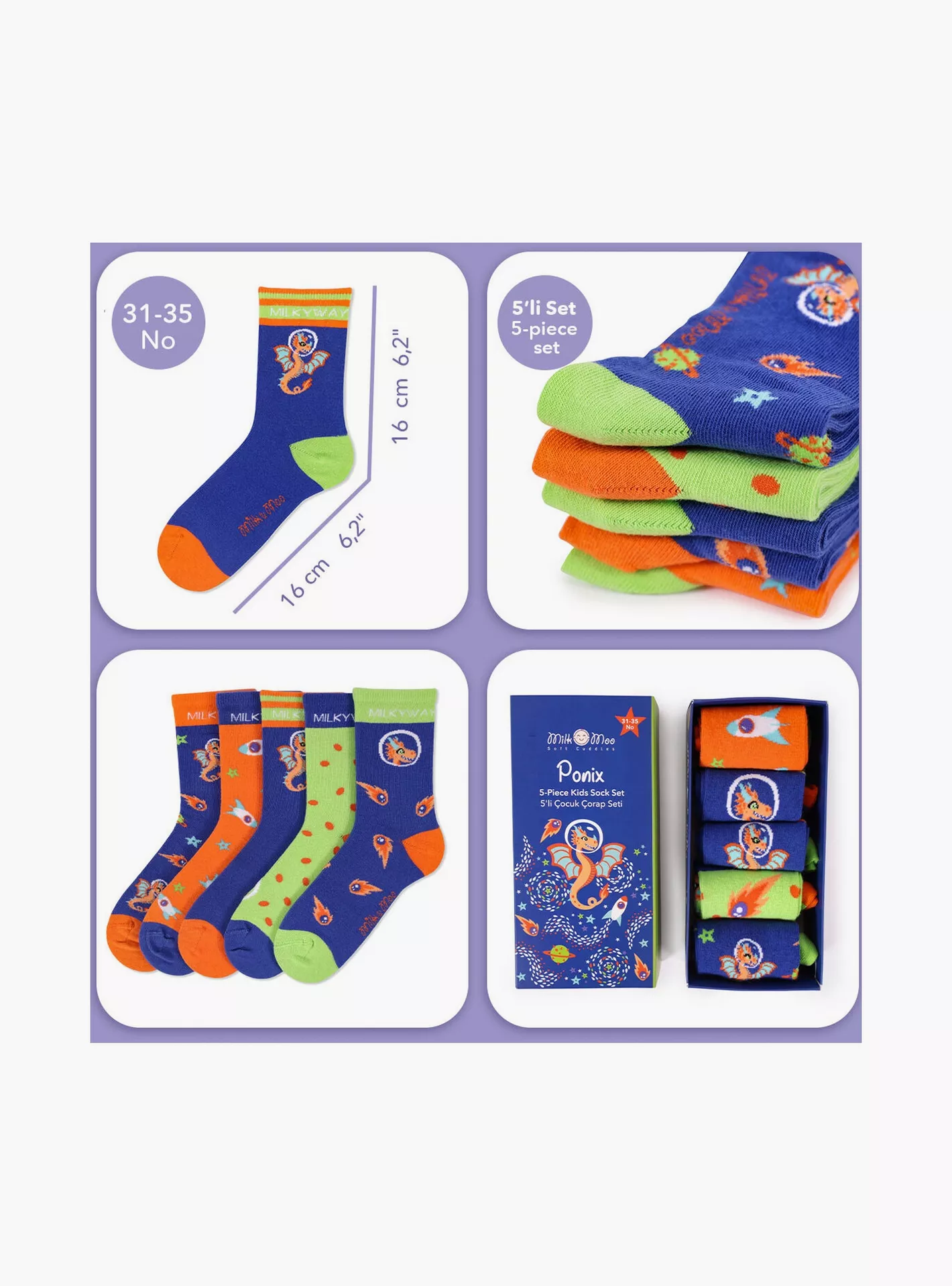 Vibrant Ponix Theme: Each pair showcases unique and playful designs that children will love, adding a splash of color to their outfits.