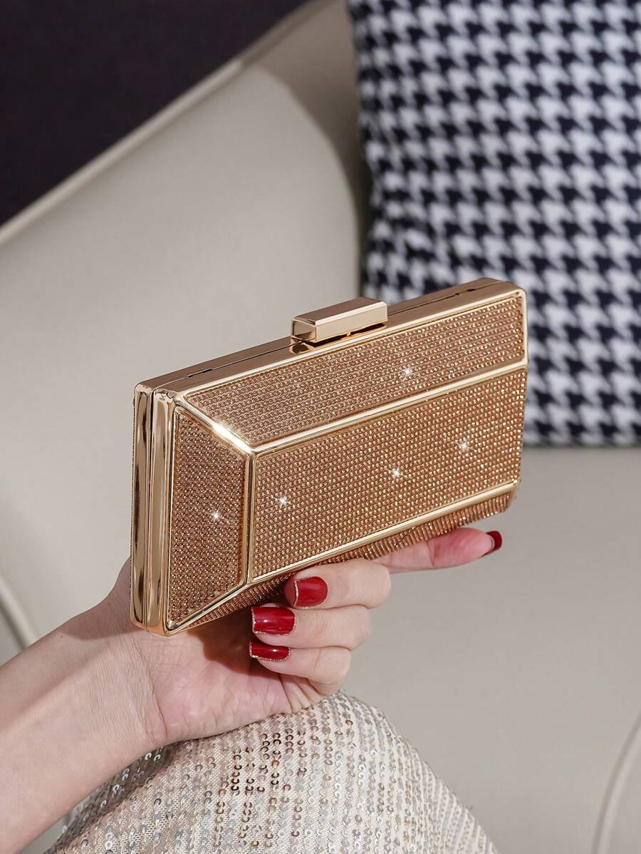 Turn heads and sparkle at every event with this Bling Rhinestone Embellished Clutch Bag—a stunning blend of elegance and glamour. Designed in a chic box shape, this dazzling accessory is encrusted with shimmering rhinestones that catch the light from every angle, making it a must-have for stylish evenings, formal occasions, and special celebrations.