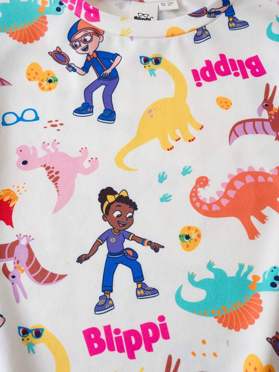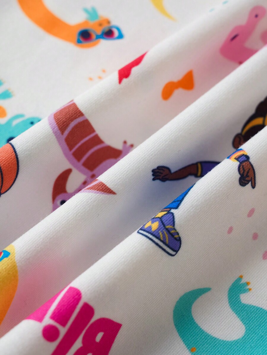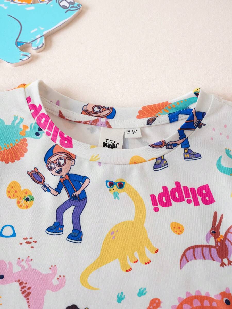 Blippi X SHEIN Young Girl Cartoon Dinosaur Print Cute Casual Long Sleeve T-Shirt