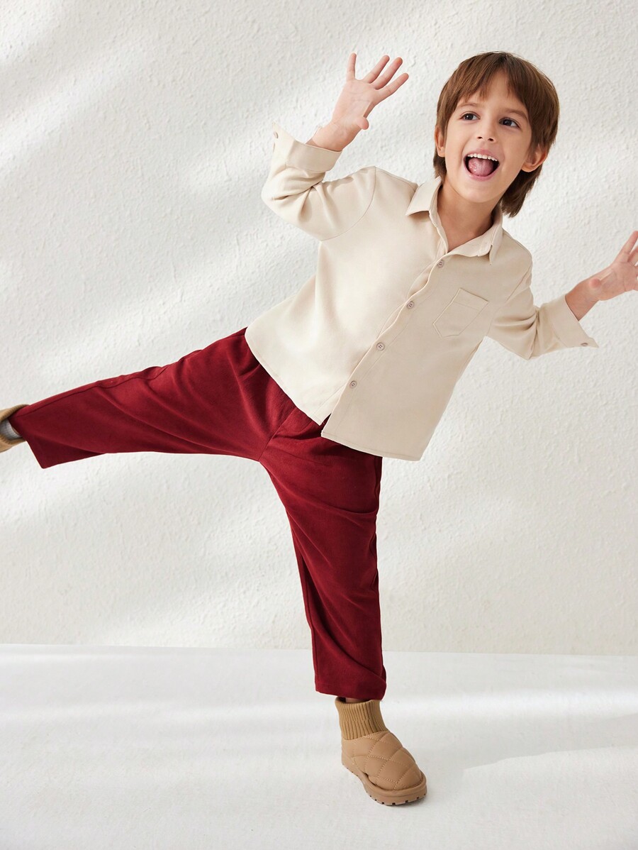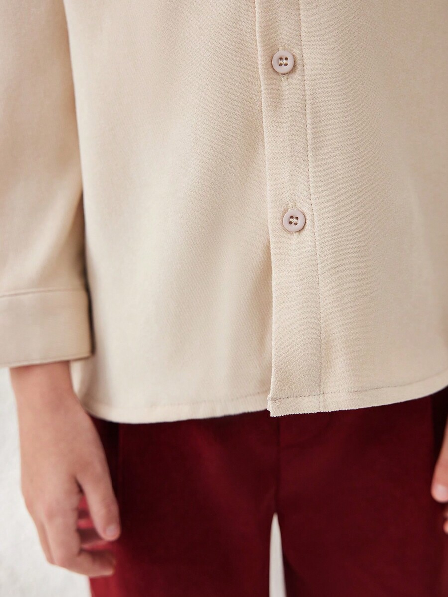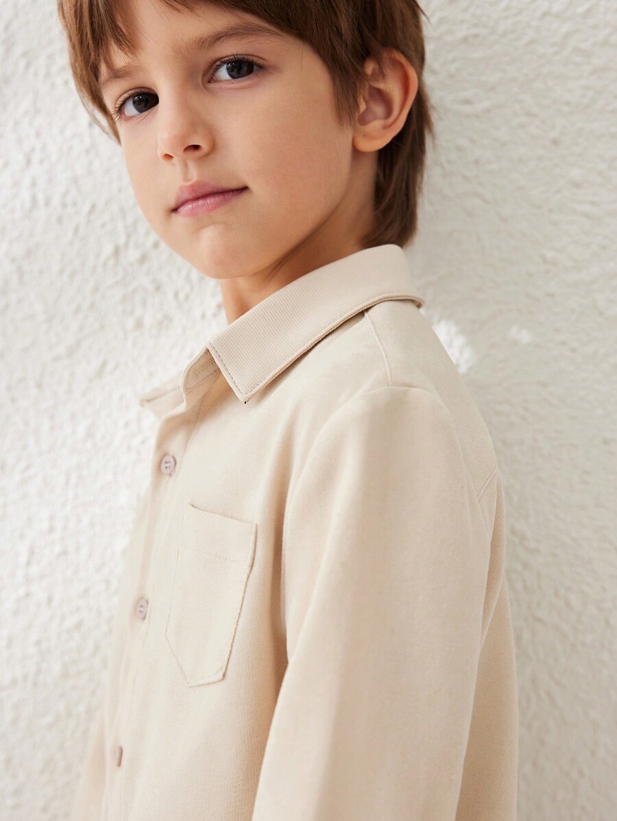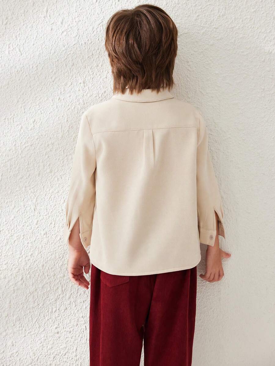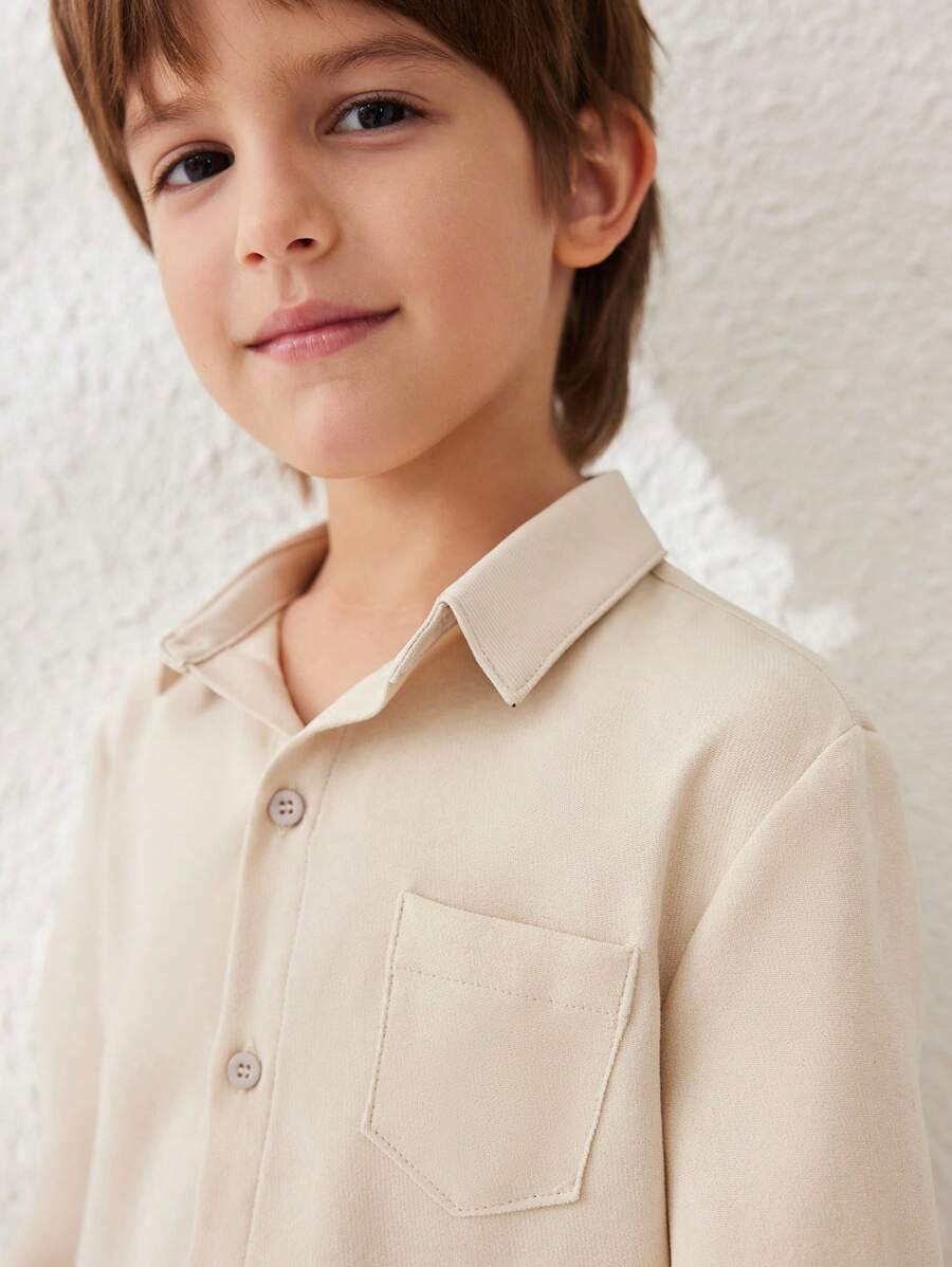 Blossori Young Boys Solid Color Long Sleeve Shirt For Casual Wear, Autumn