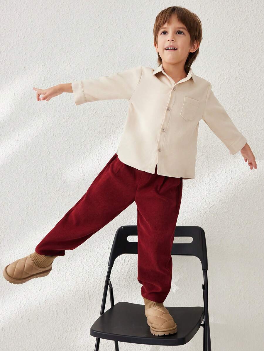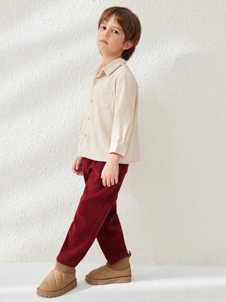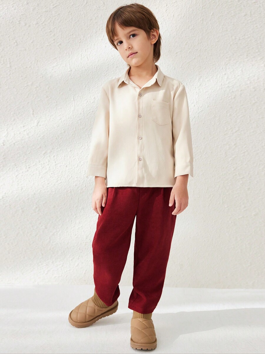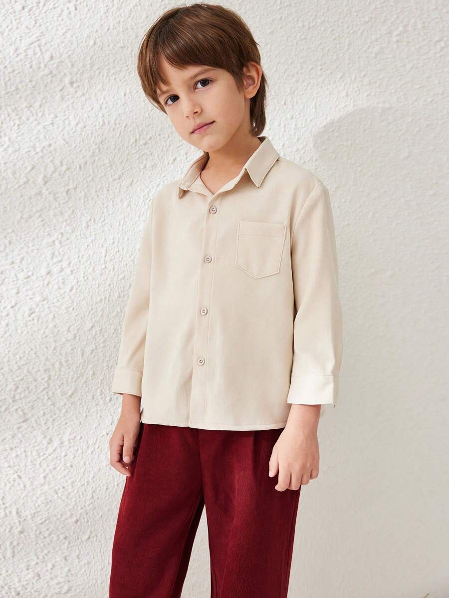 / Blossori Young Boys Solid Color Long Sleeve Shirt For Casual Wear, Autumn
