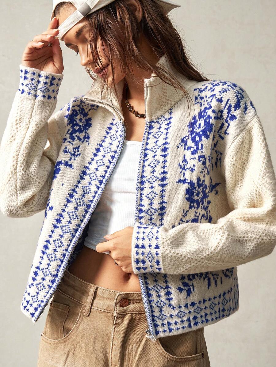 Bohemela Ladies Vacation Cardigan Turtleneck Sweater, White, Autumn/Winter,Long Sleeve Tops