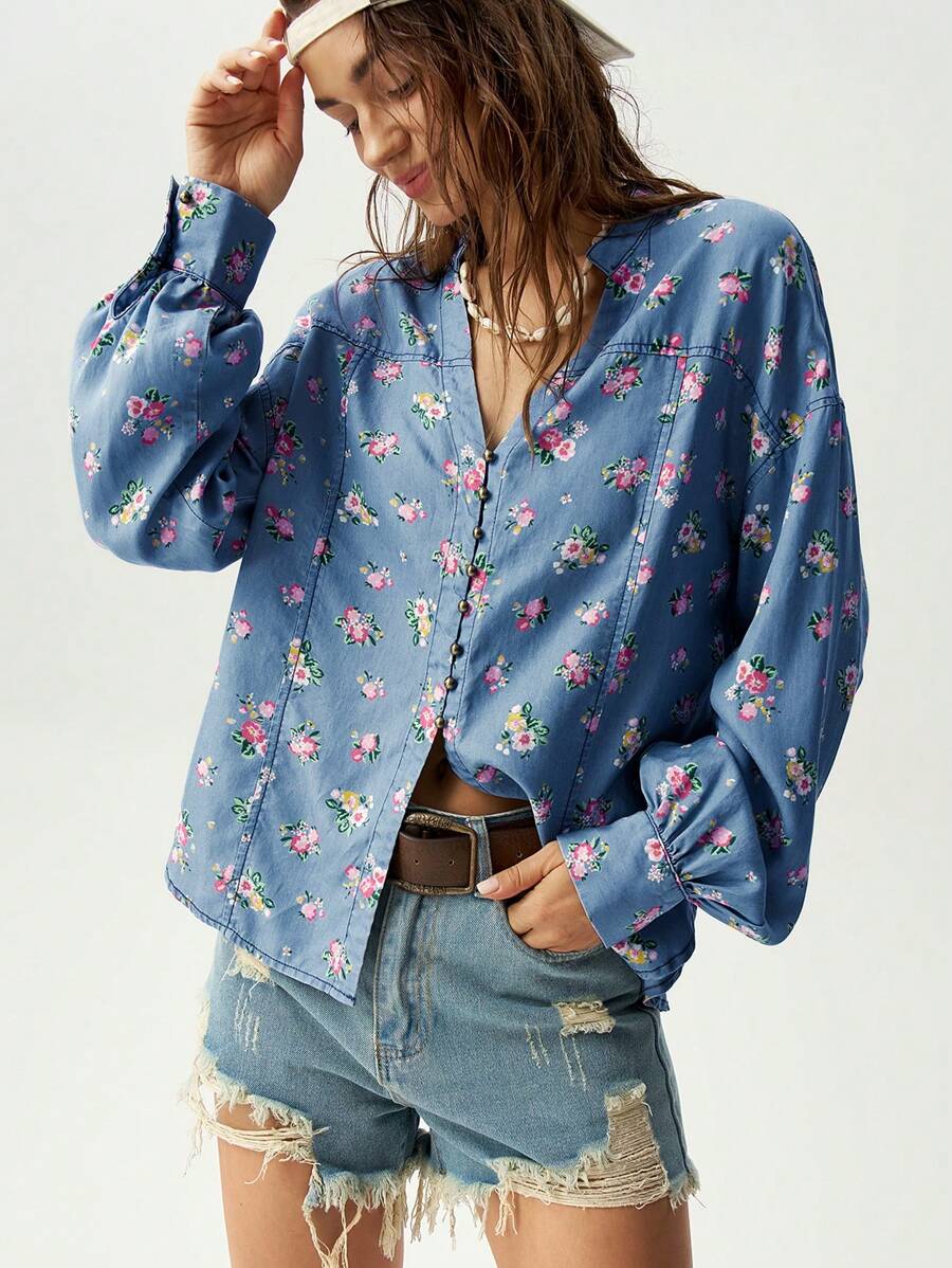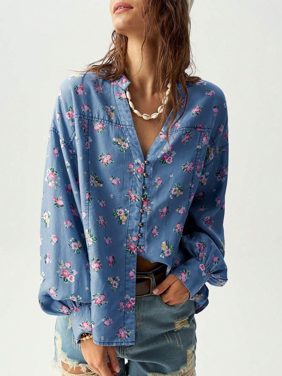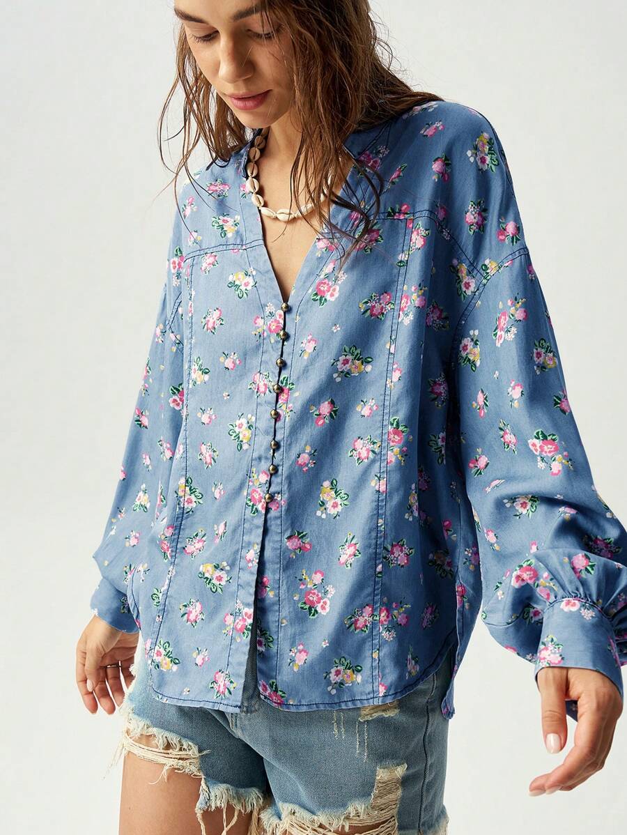 / Bohemela Vacation Colorful Ditsy Floral Print Casual Shirt For Women