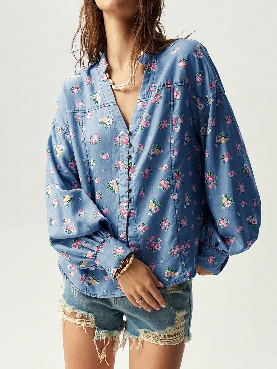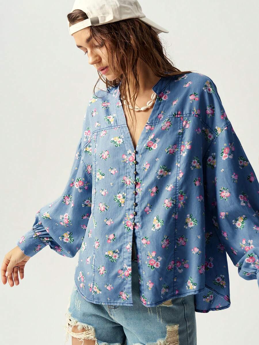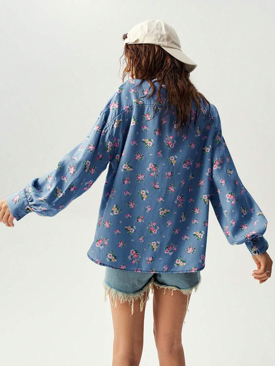 / Bohemela Vacation Colorful Ditsy Floral Print Casual Shirt For Women