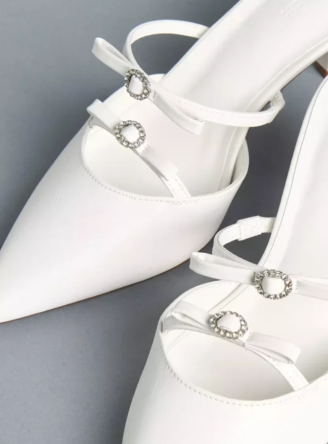 Bow Accent Slip-On Shoes with Stiletto Heels