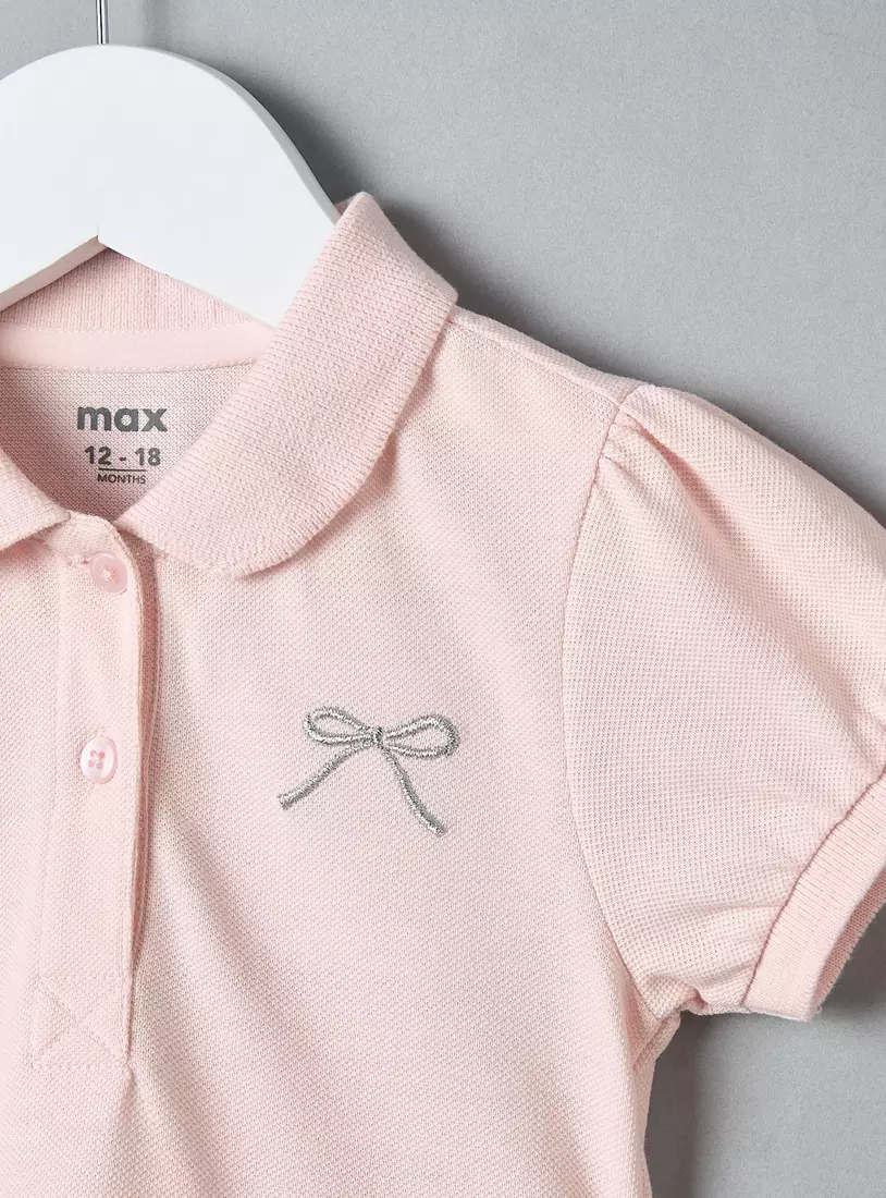 Dimensional Bow Appliqué: Features a standout, textured bow crafted from fabric (often the same pique or a contrasting satin) and meticulously stitched on, adding a tactile, three-dimensional focal point.
