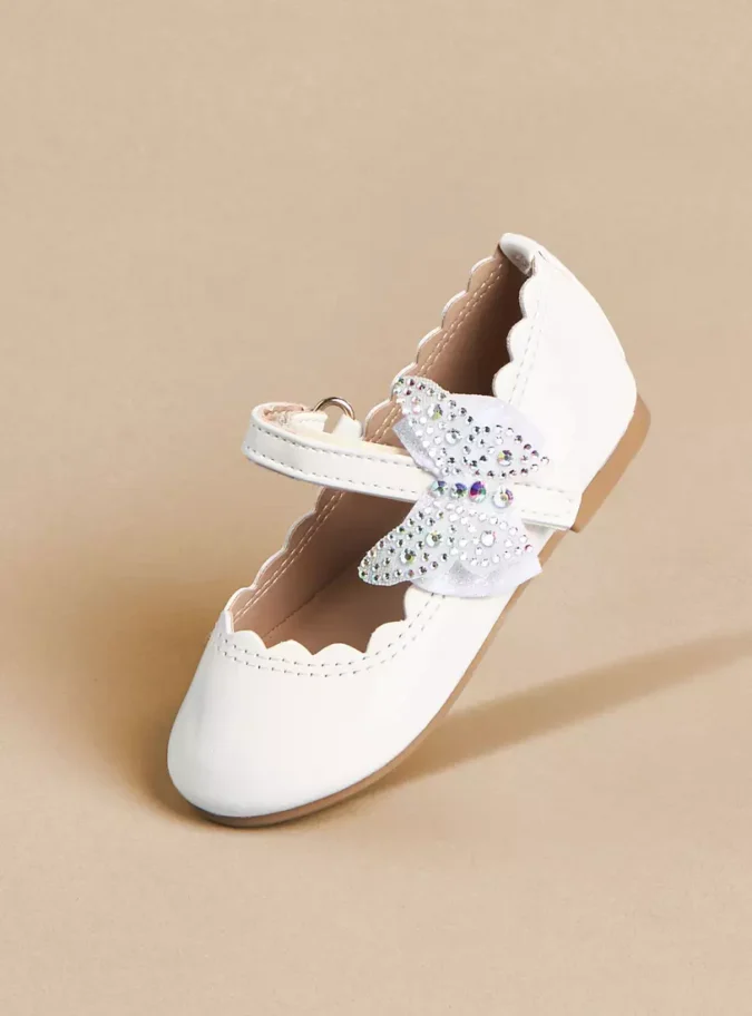 Butterfly Accent Ballerina Shoes with Hook and Loop Closure