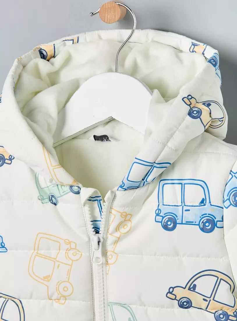 Vibrant Car Print: All-over design with cars, trucks, and vehicles for playful style.