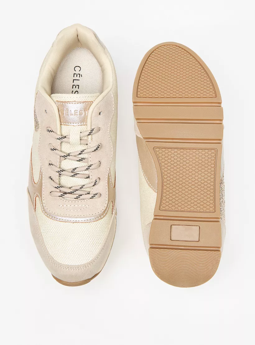 Celeste Women’s Textured Low Ankle Sneakers with Lace-Up Closure