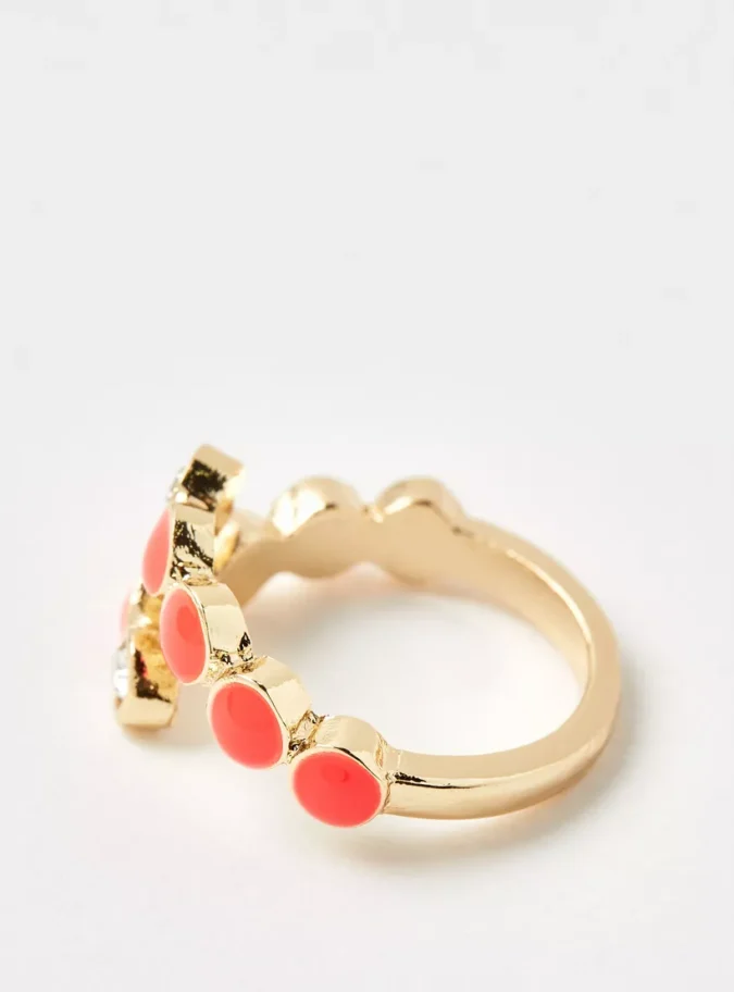 Multi-Charm Design: This is the defining feature. The ring features not one, but several small charms attached to the band. These can include shapes like: