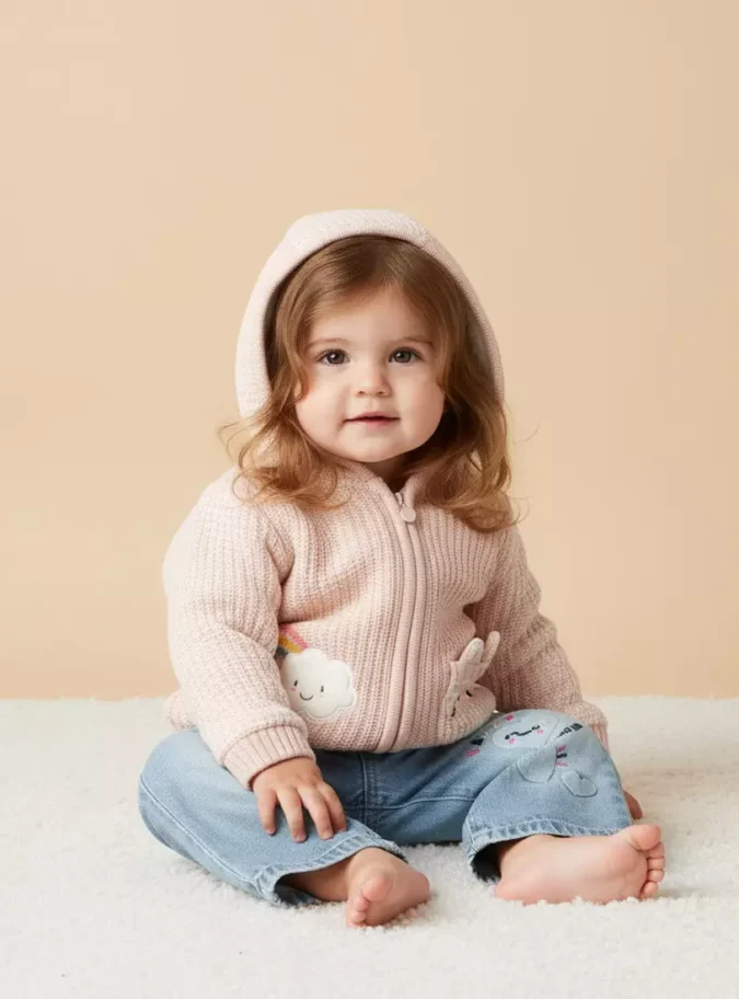 • Whimsical Cloud Appliqué: A soft, often 3D, fluffy cloud shape is attached to the chest, sleeve, or back, creating a cute, imaginative focal point.