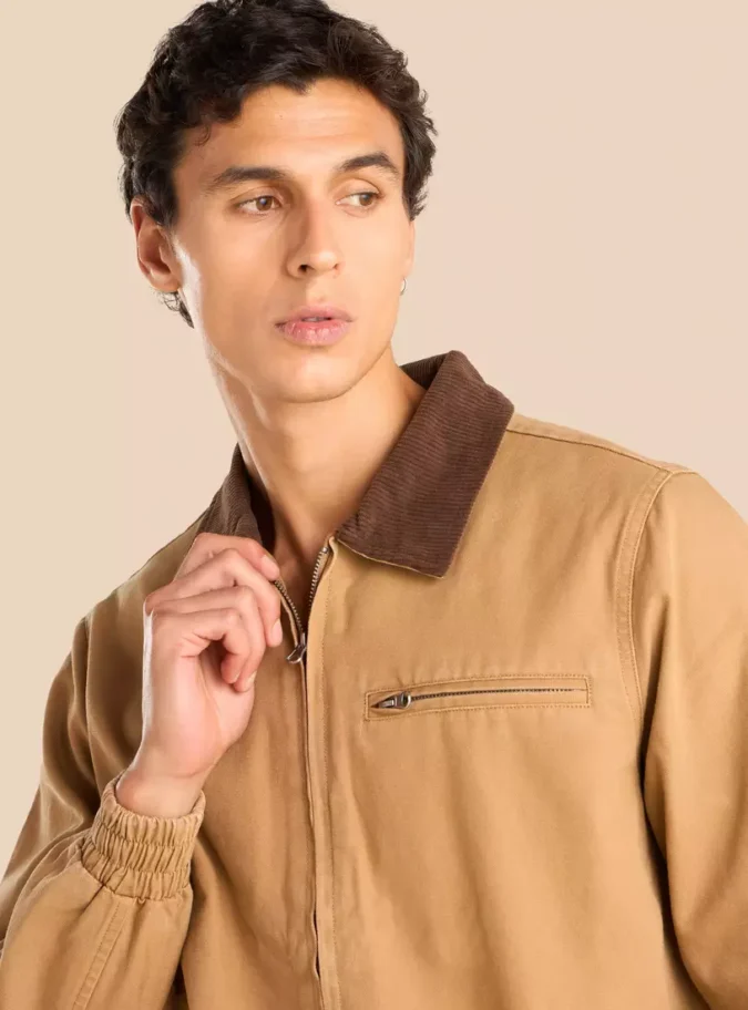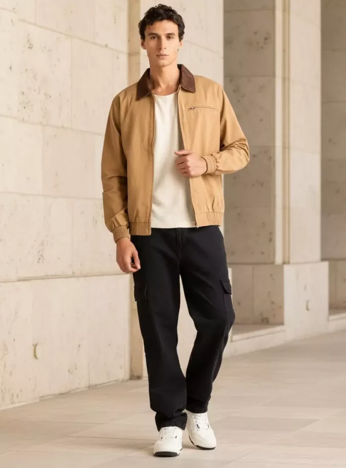 • Contrast Corduroy Collar: The standout feature—a soft, ribbed corduroy collar adds a touch of texture, warmth, and sophisticated contrast to the classic denim trucker silhouette.
