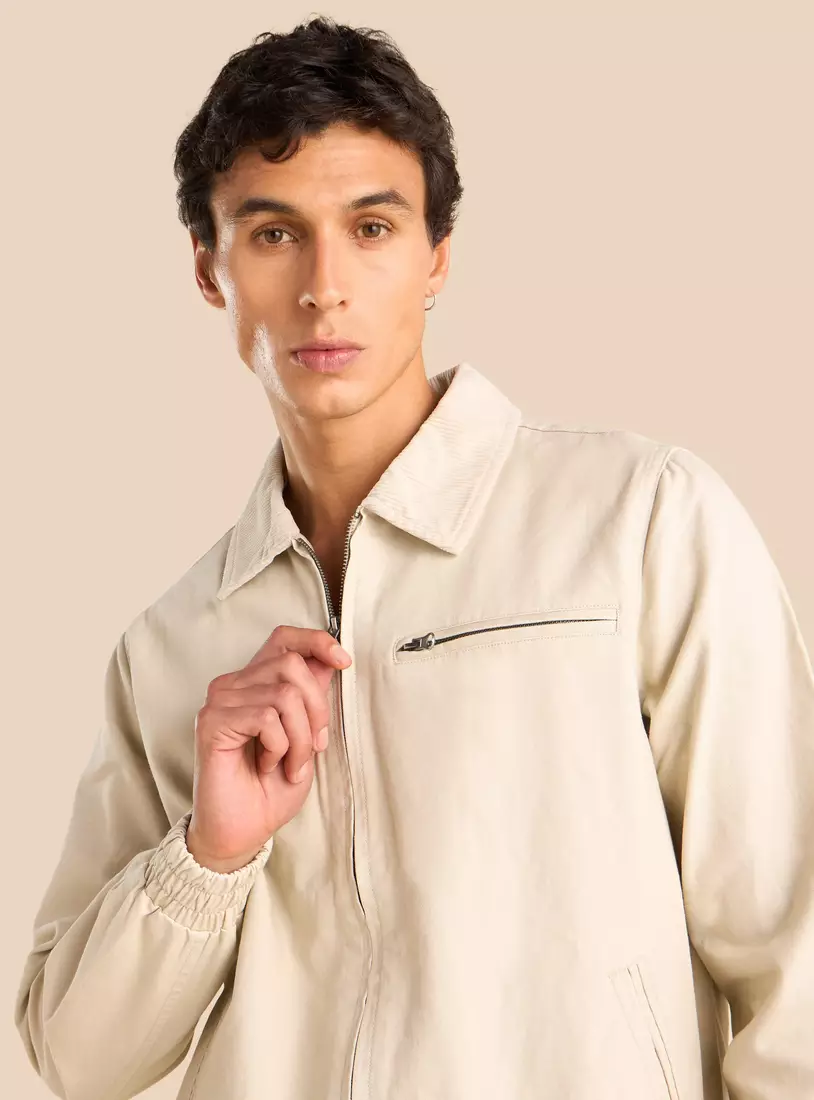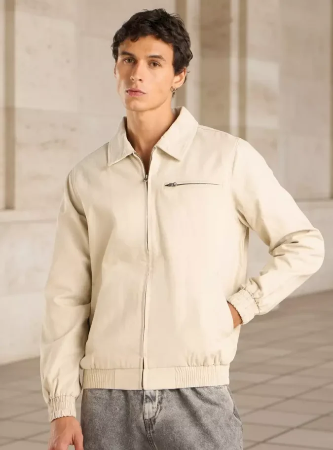 • Structured Collar Design: Features a pointed or stand-collar style that lays neatly, providing a polished foundation for the jacket’s utilitarian silhouette and protecting against breeze.