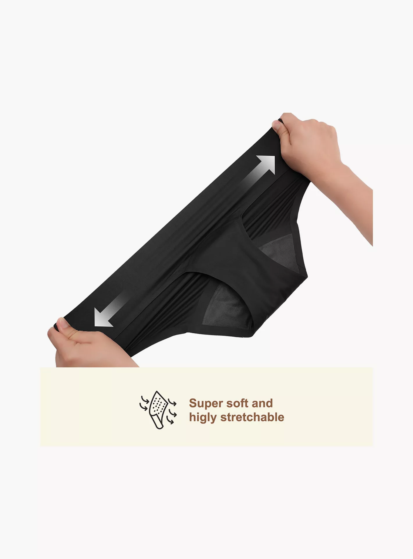 The Core Comfort Seamless Max Period Pants in black are designed as a reusable, comfortable, and leak-resistant alternative to pads or tampons, especially suited for heavy flow days. These underwear-style period pants are engineered with a multi-layer absorbent core and seamless construction to offer discreet, all-day protection without side leaks. They combine breathable fabrics with moisture-wicking properties to keep you feeling dry, and their design also supports use during sports, swimming, postpartum, and light incontinence.