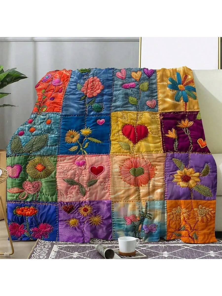 Cozy Floral Print Flannel Blanket – Soft, Warm Comfort For Sofa, Bed, Car, Office, Camping, Travel