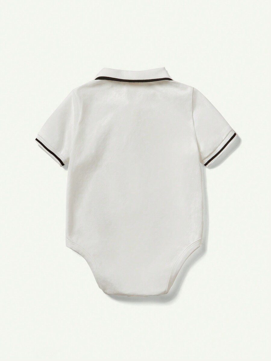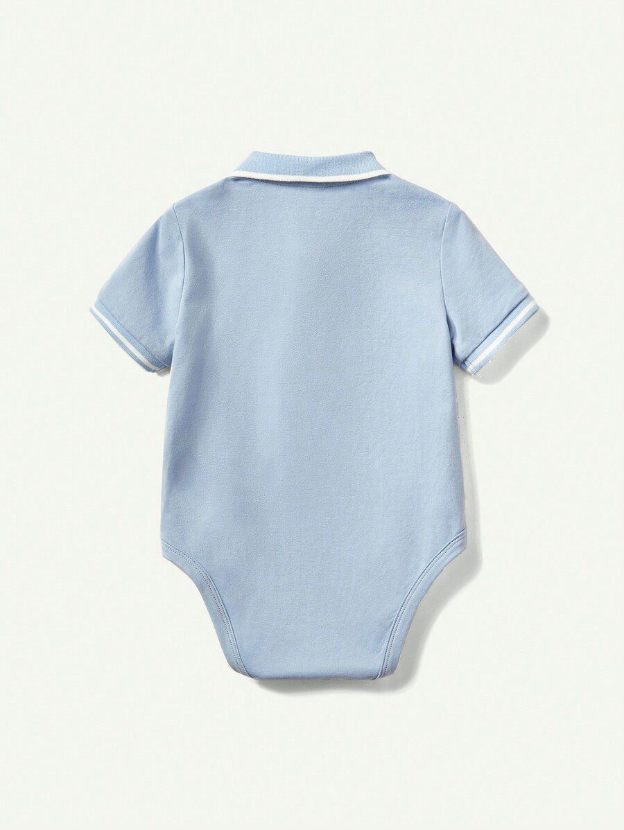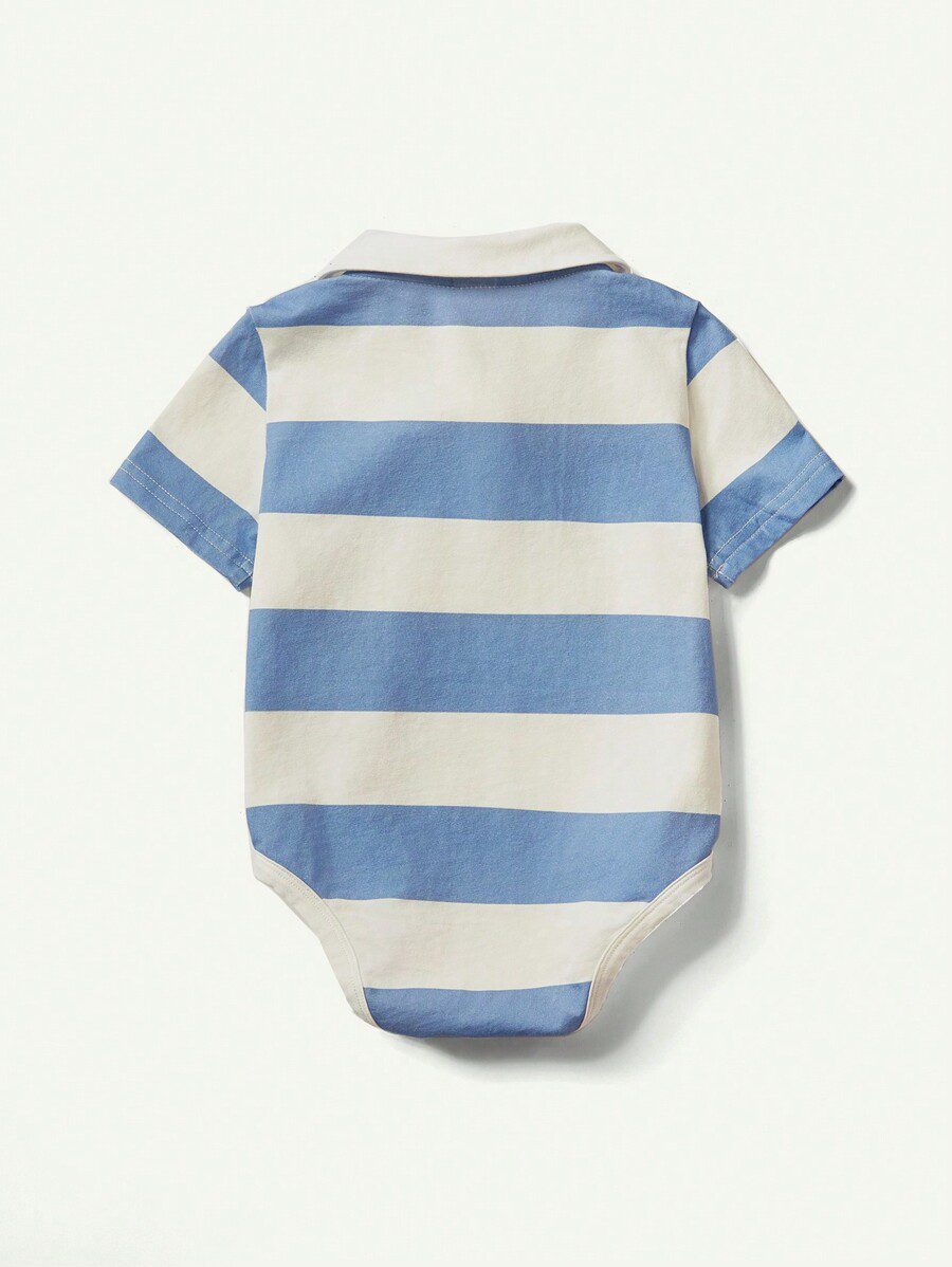 Cozy Pixies Cartoon Animal Patterned Turn-Down Collar Short Sleeve Bodysuit Set For Baby Boys