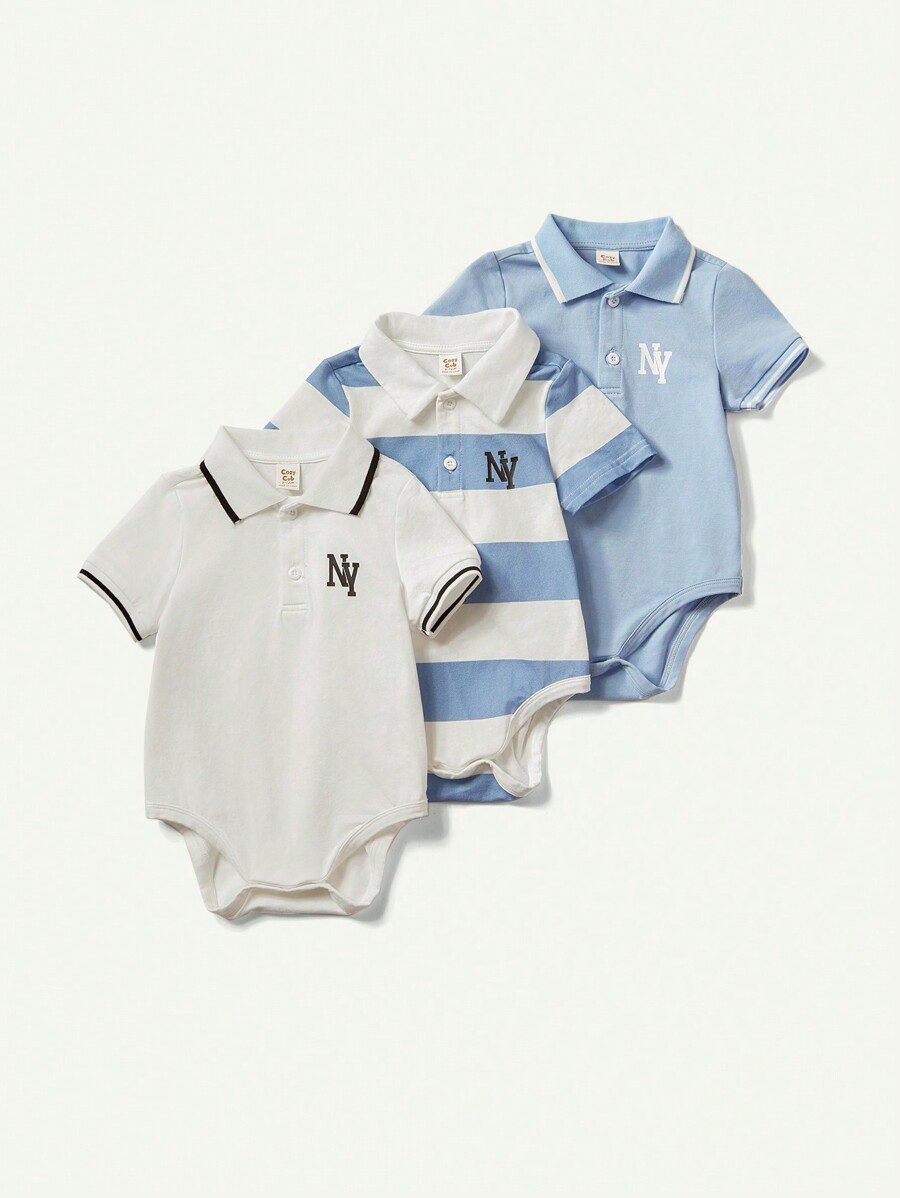 Cozy Pixies Cartoon Animal Patterned Turn-Down Collar Short Sleeve Bodysuit Set For Baby Boys quantity