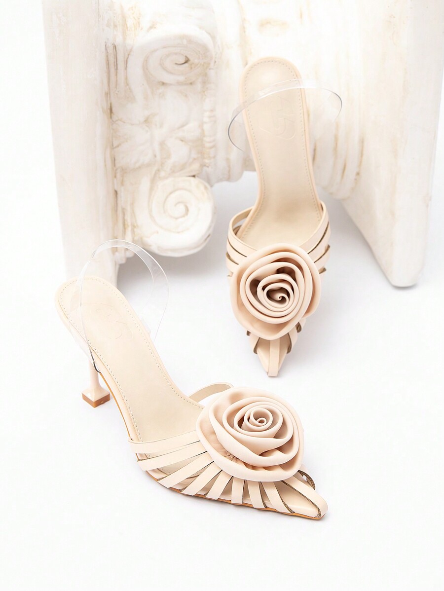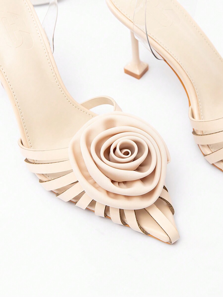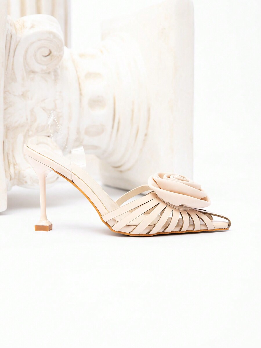 CUCCOO CHICEST Women’s Elegant White Rose Decor Hollow Design Pointed Toe Leather Stilettos