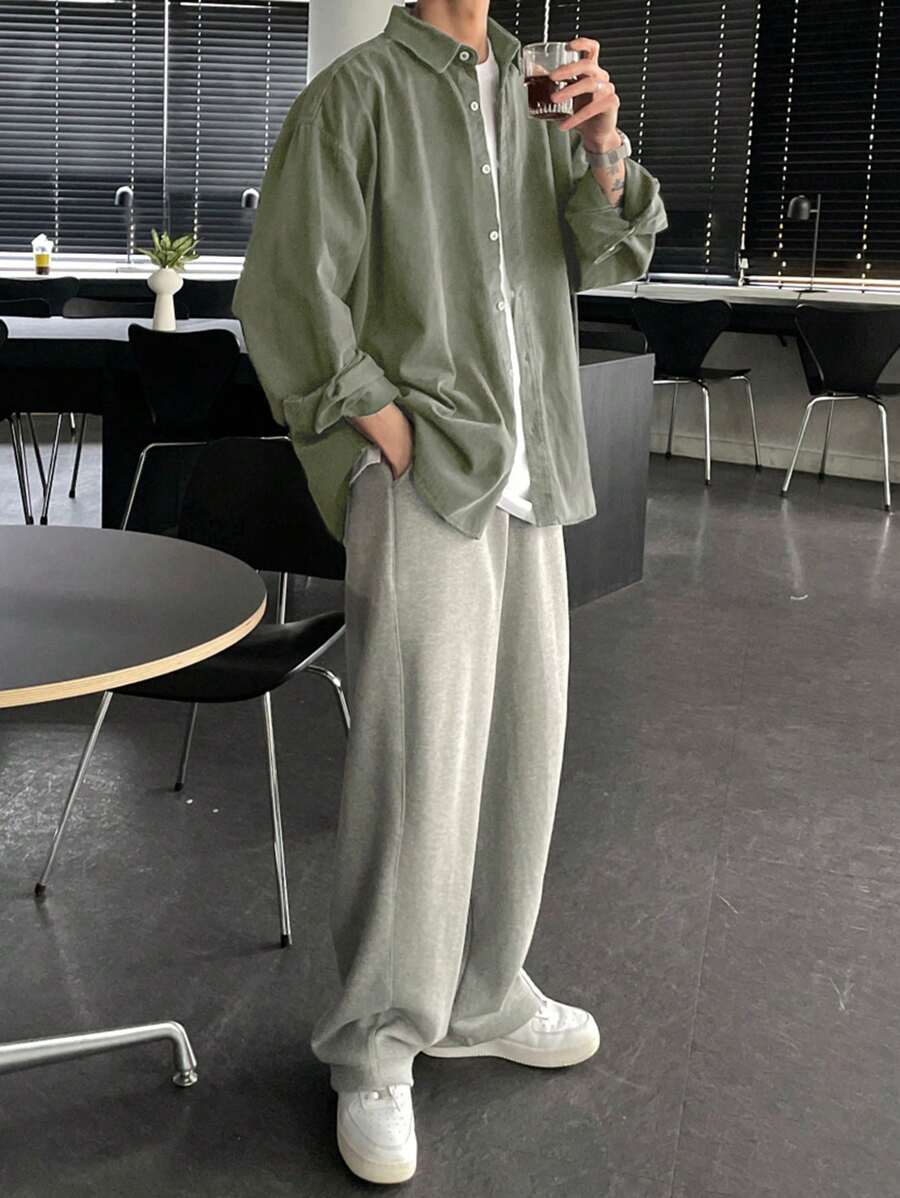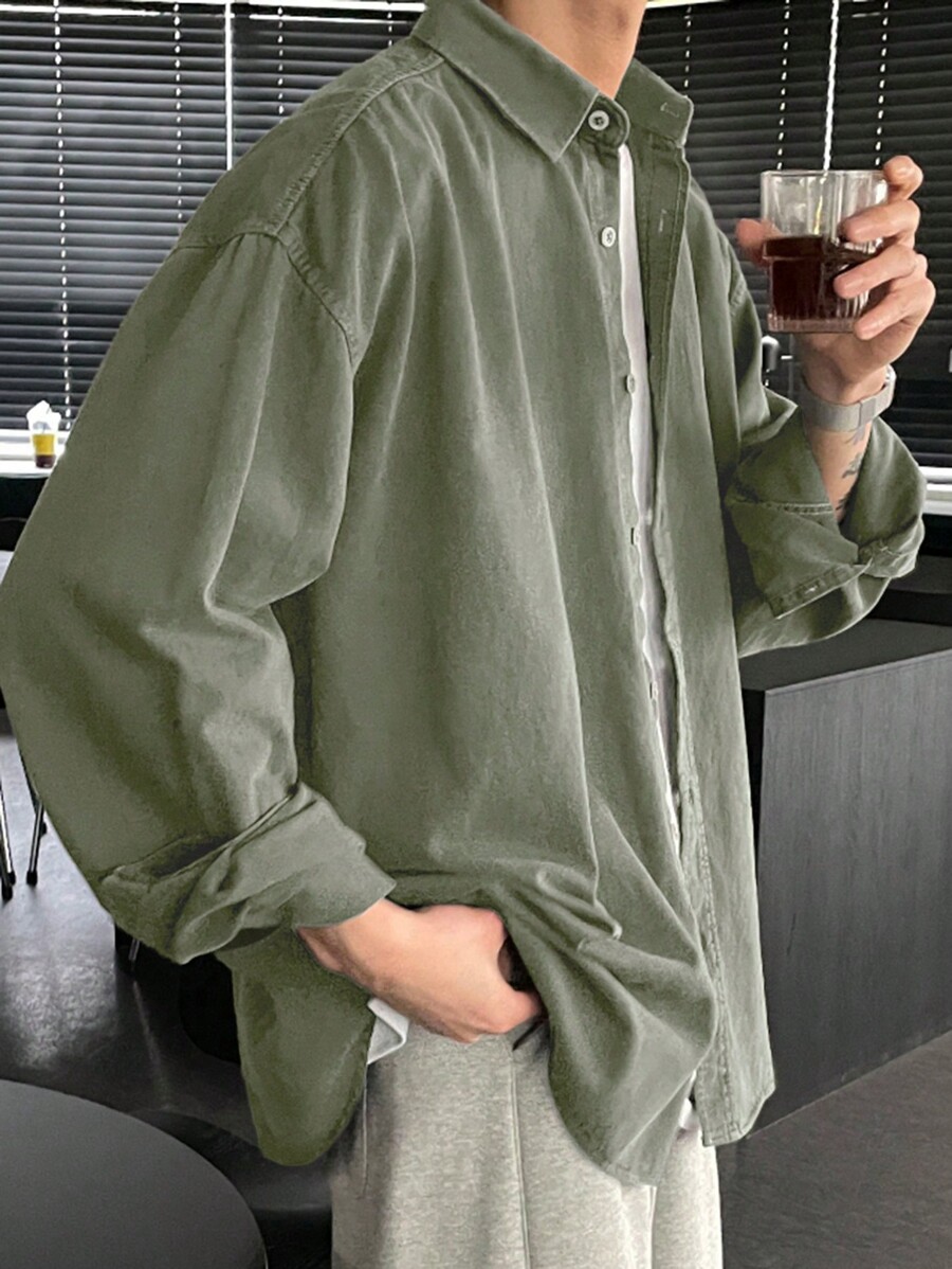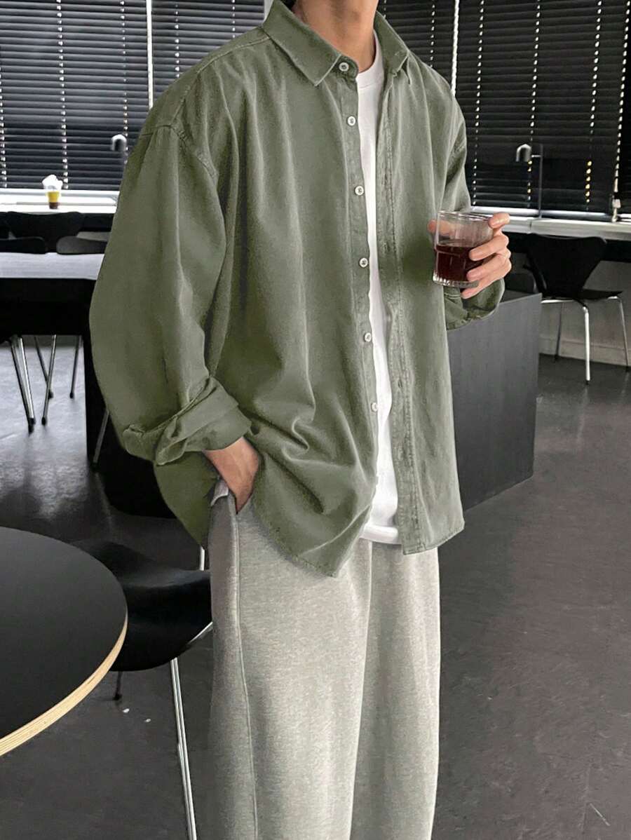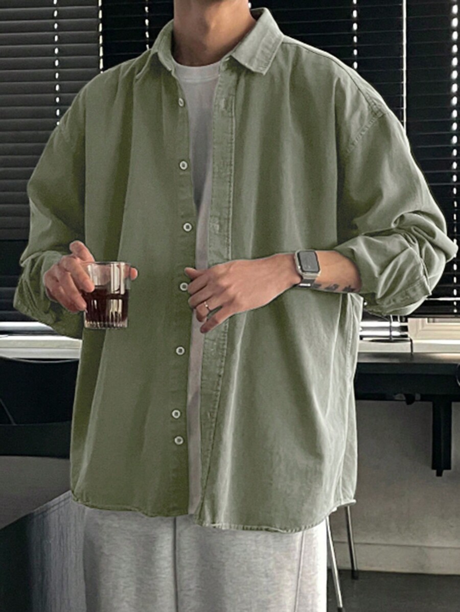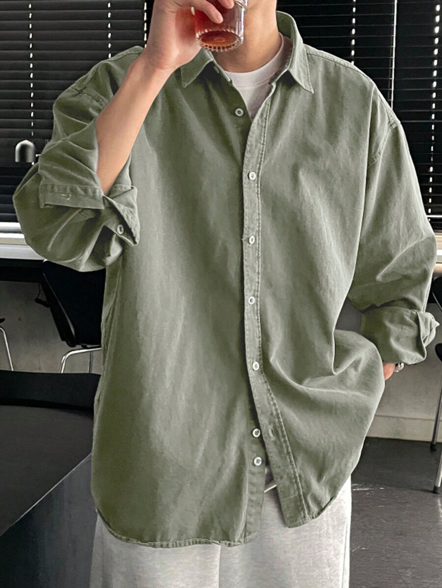 DAZY Casual Men’s Solid Color Button Front Long Sleeve Shirt, Suitable For Autumn