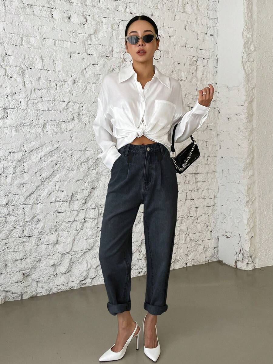 DAZY Plicated Detail Mom Fit Jeans quantity