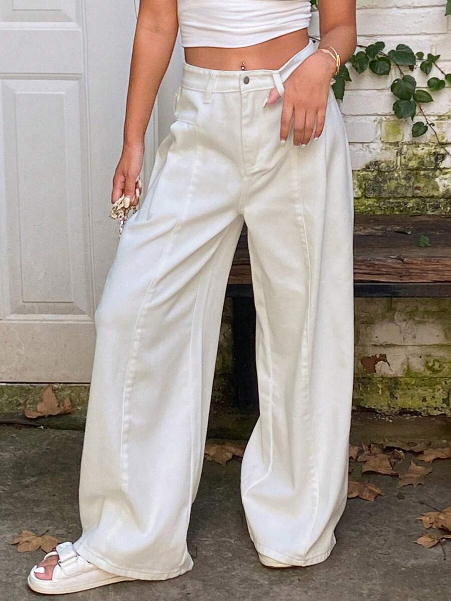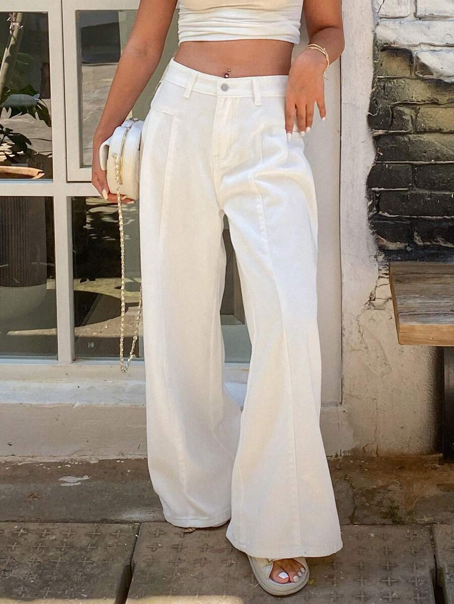 DAZY Women’s Casual Solid Color Pleated Wide Leg Jeans