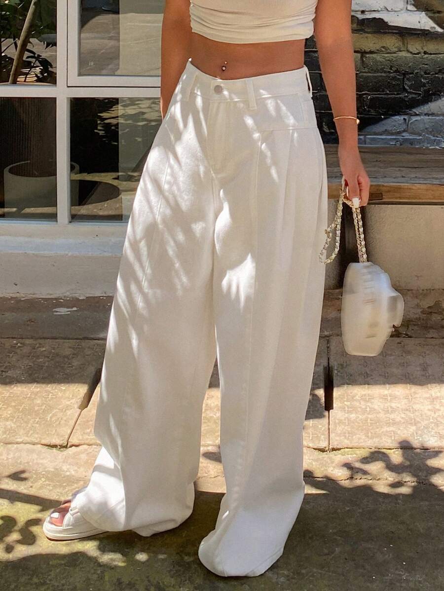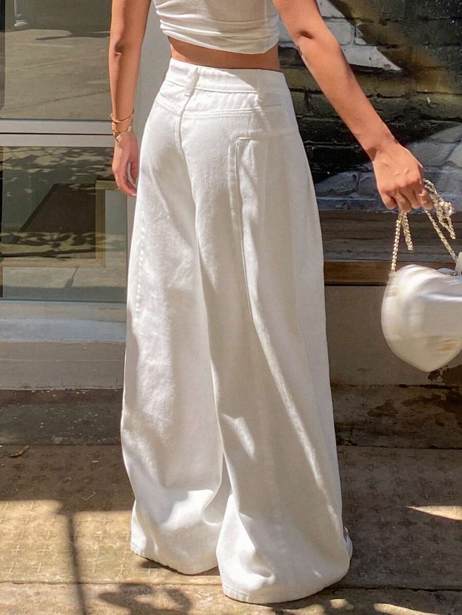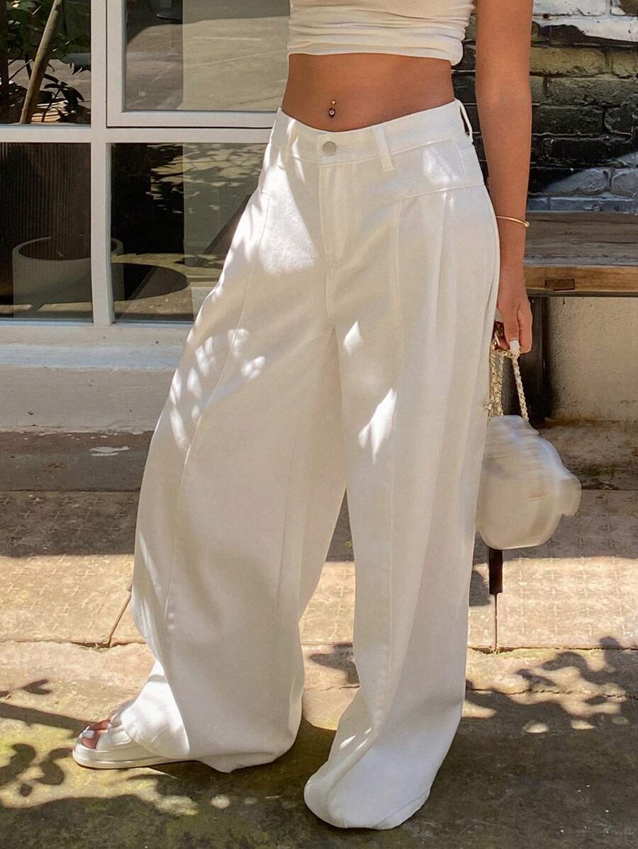 • Pleated Detailing: Unique pleat accents at the front add an elegant touch and enhance the overall flow of the wide leg fit.