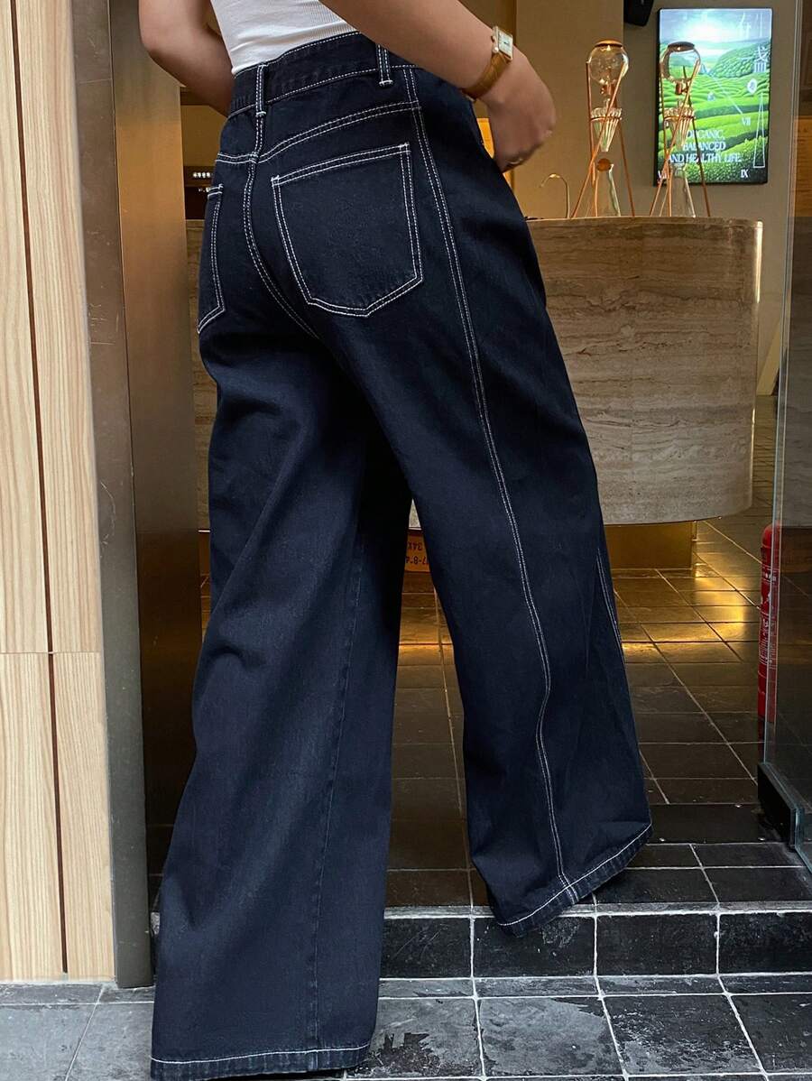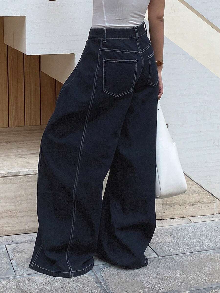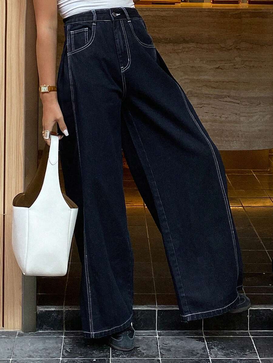 / DAZY Women’s Pleated Straight-Leg Denim Jeans