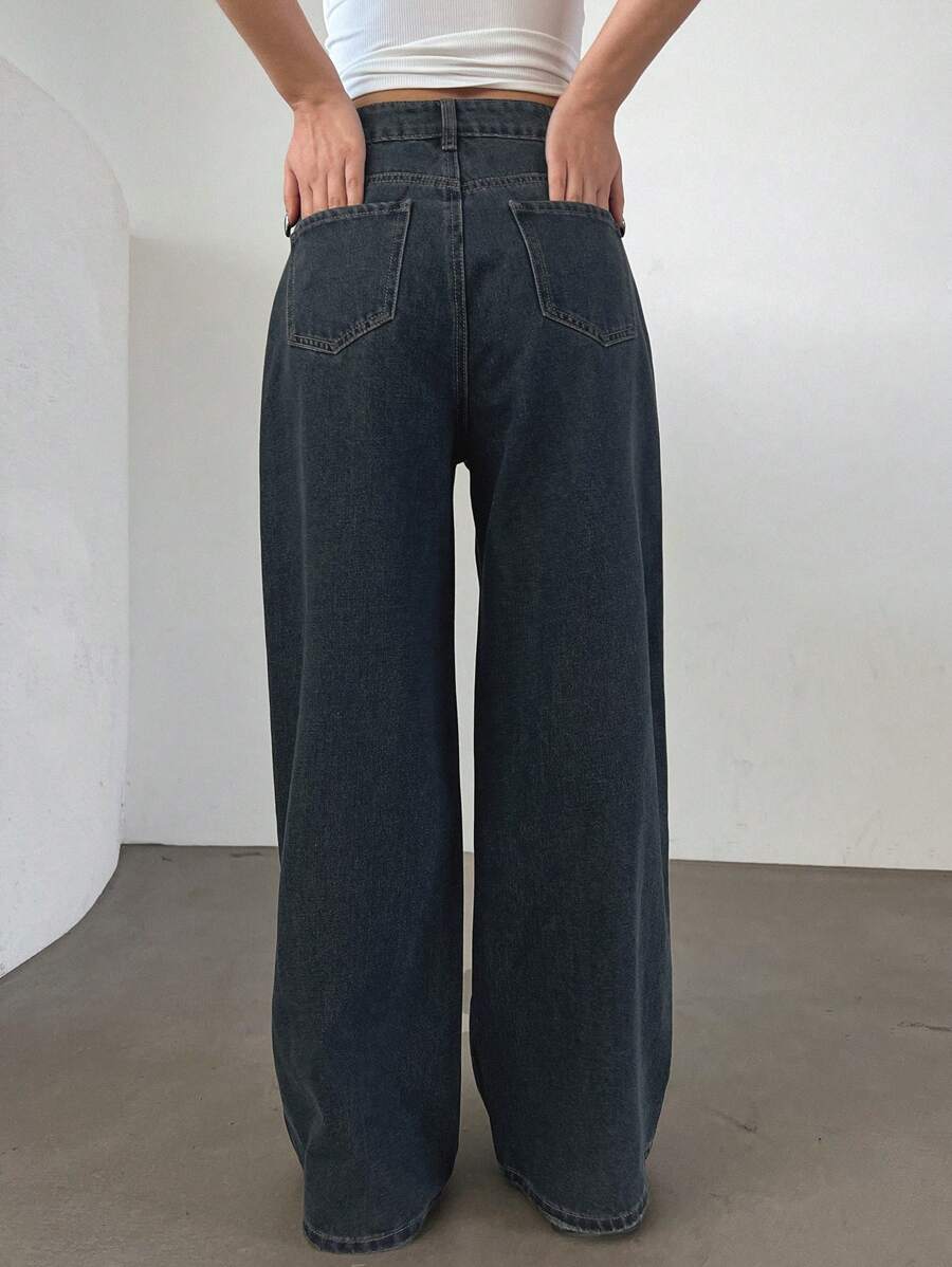 DAZY Women's Vintage Distressed Washed Cat Whisker Fading Full-Length Wide Leg Jeans quantity