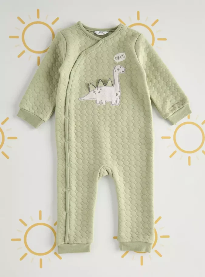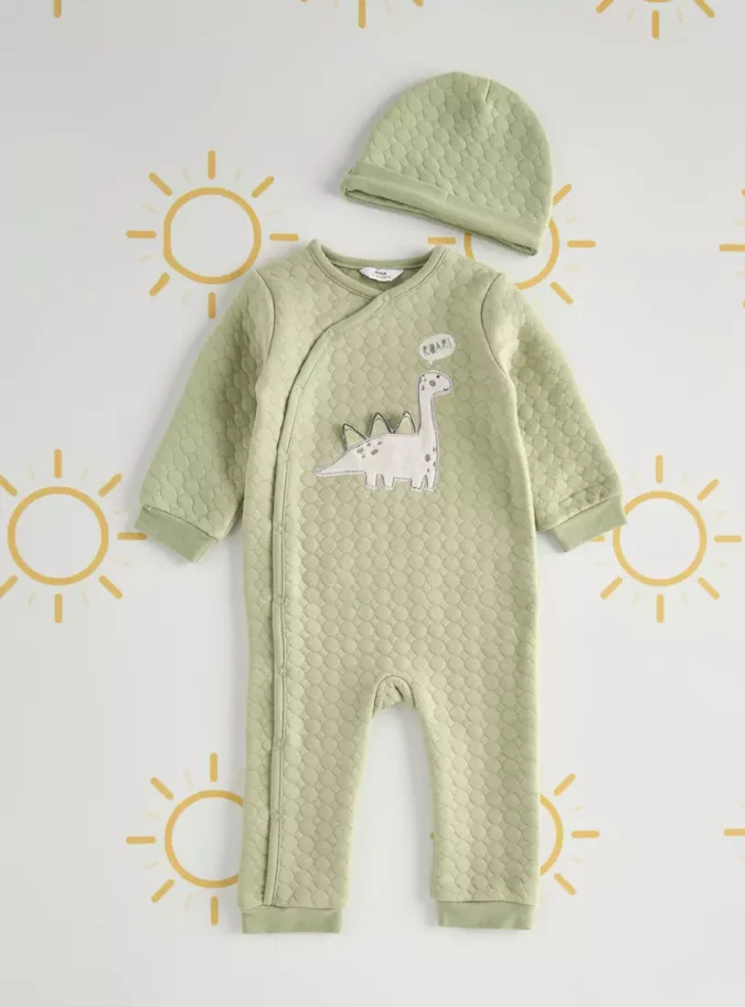 Dinosaur Applique Quilted Sleepsuit with Cap