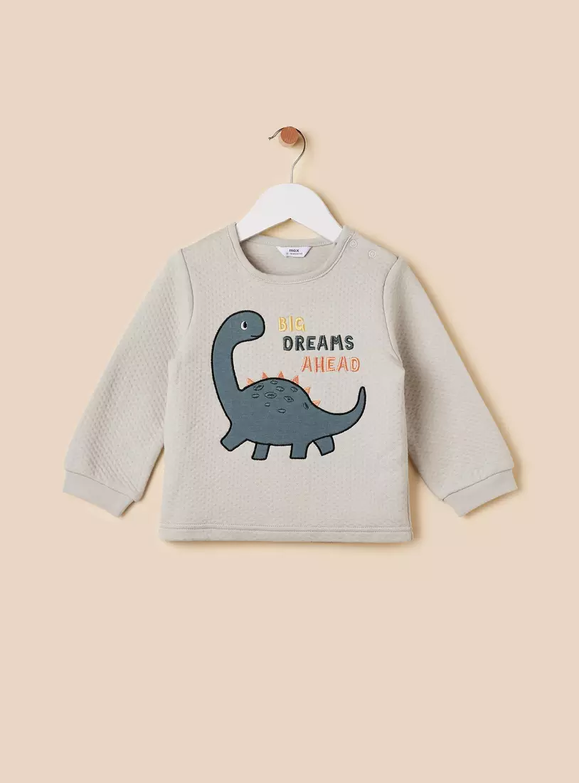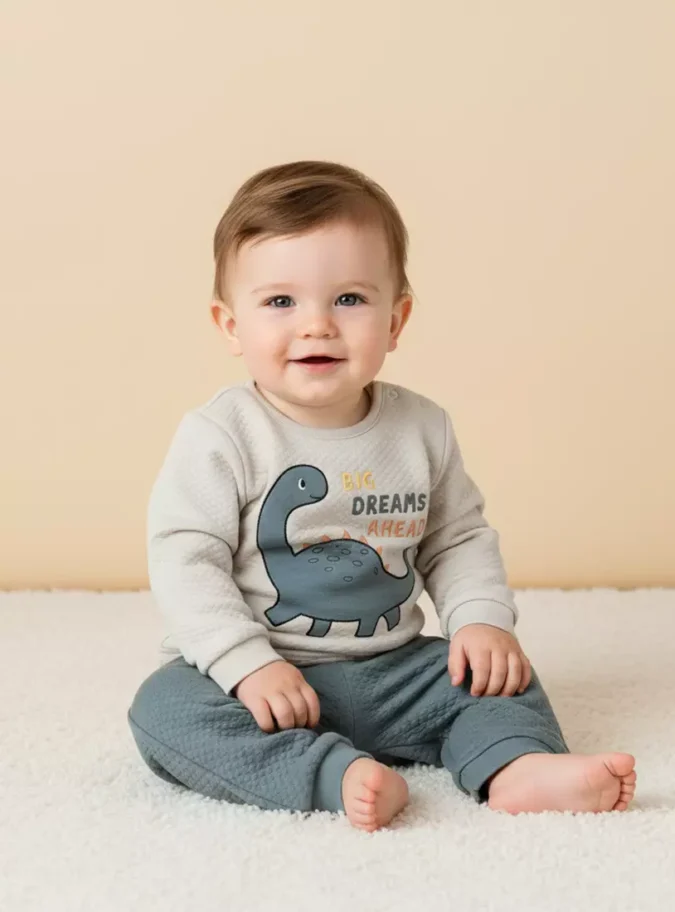 Detailed Dinosaur Embroidery: Features a finely stitched dinosaur design for a premium, playful look.