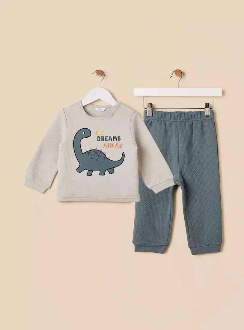 Two-Piece Set: Includes an embroidered t-shirt and matching bottoms for a coordinated outfit.