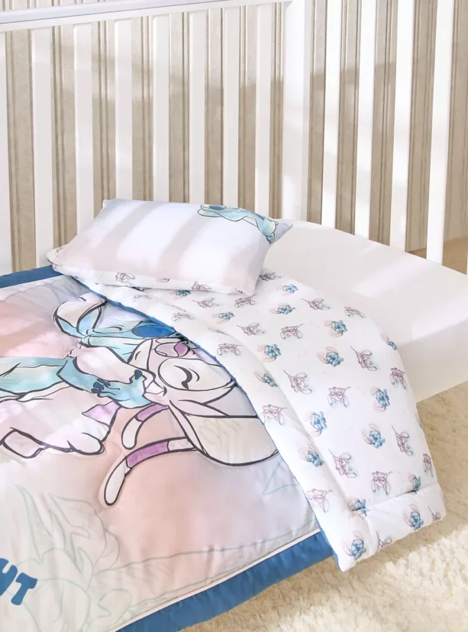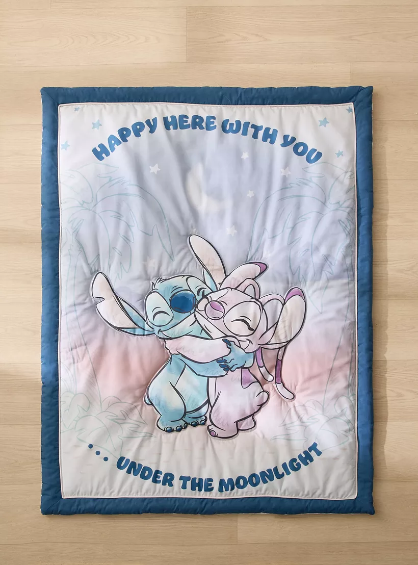 Iconic Angel & Stitch Graphics: Features adorable, character-focused prints of Stitch and his love interest, Angel, from the classic Disney film.