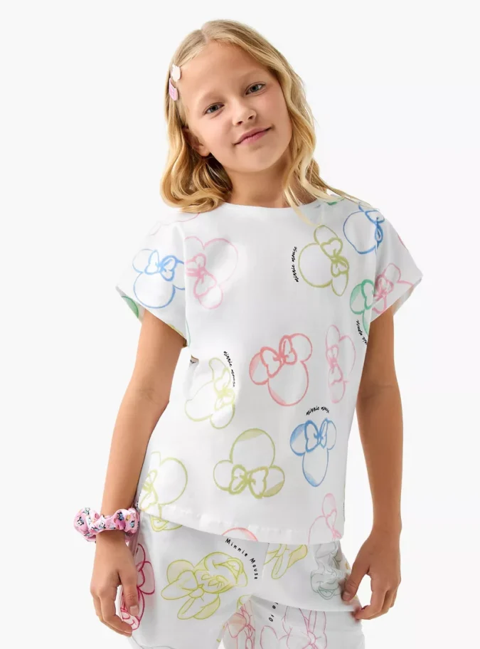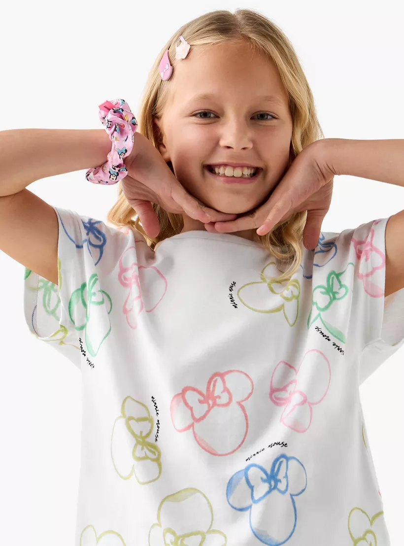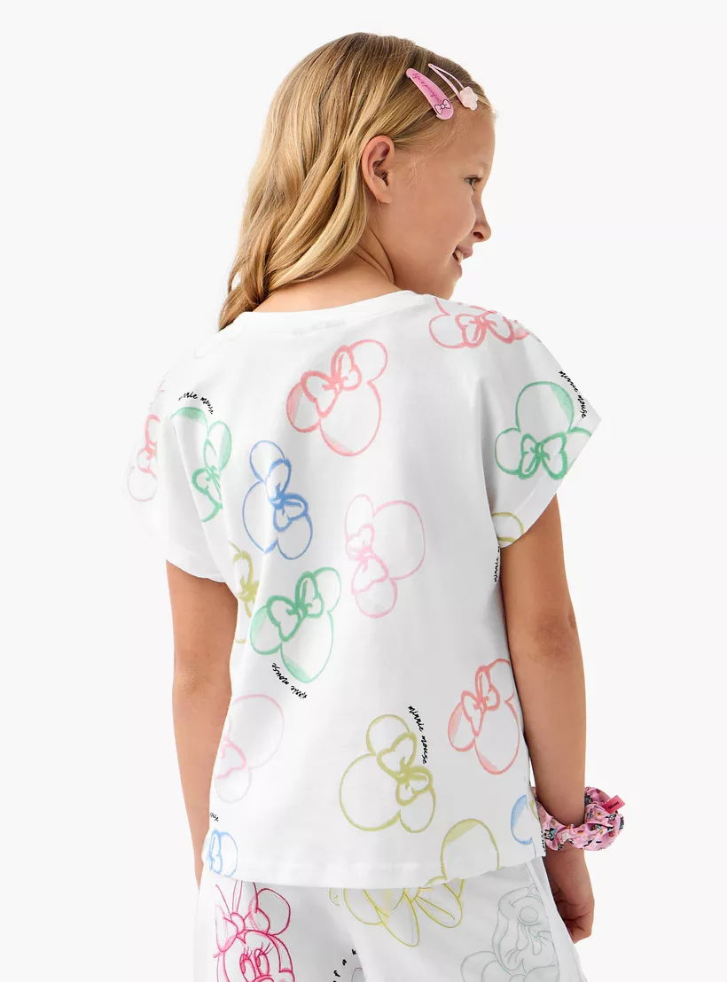 Disney All-Over Minnie Mouse Print T-shirt with Extended Sleeves