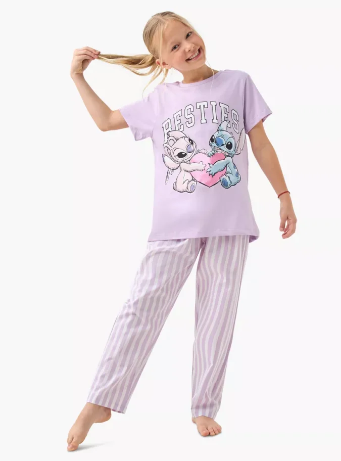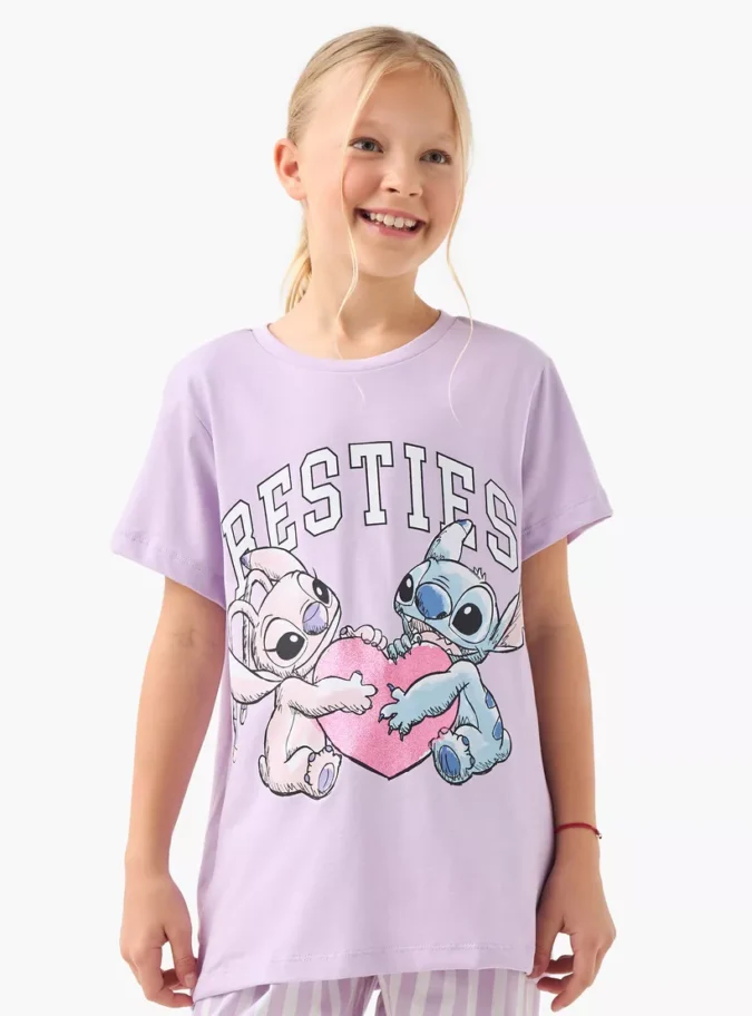 Disney Angel and Stitch Print T-shirt and Pyjama Set