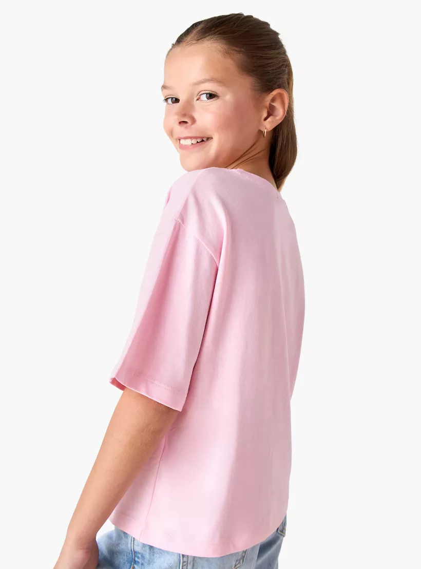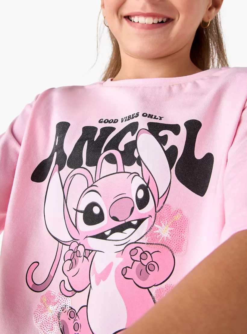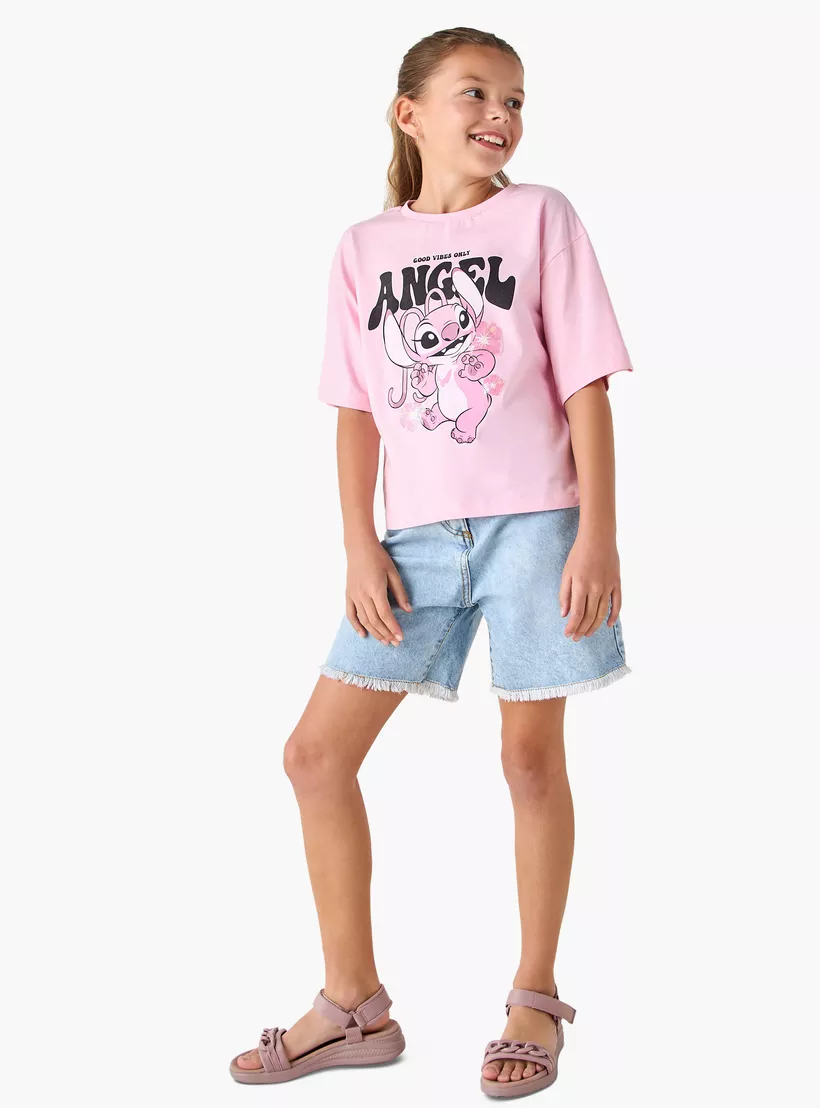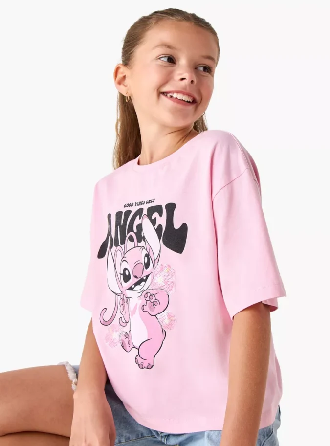 Disney Angel Print Crew Neck T-shirt with Short Sleeves