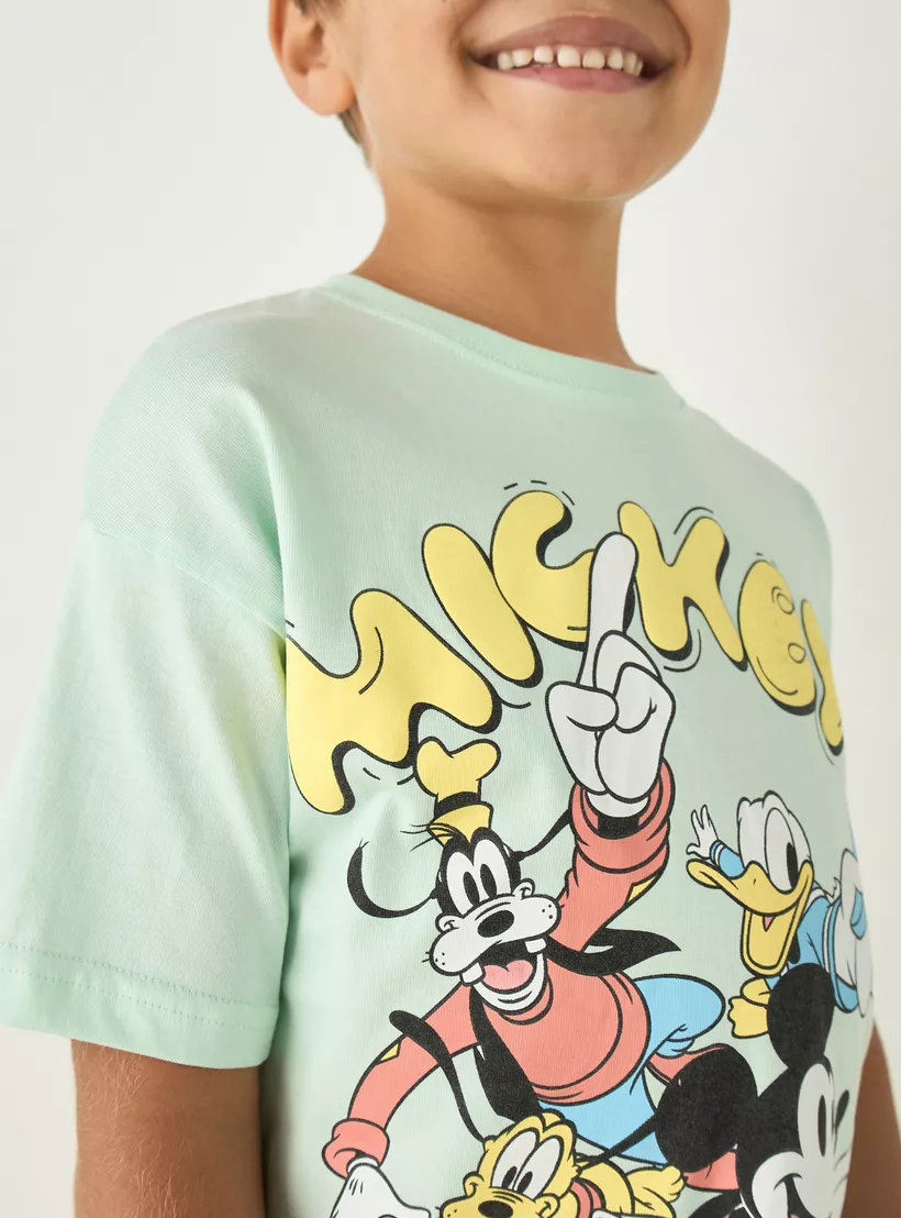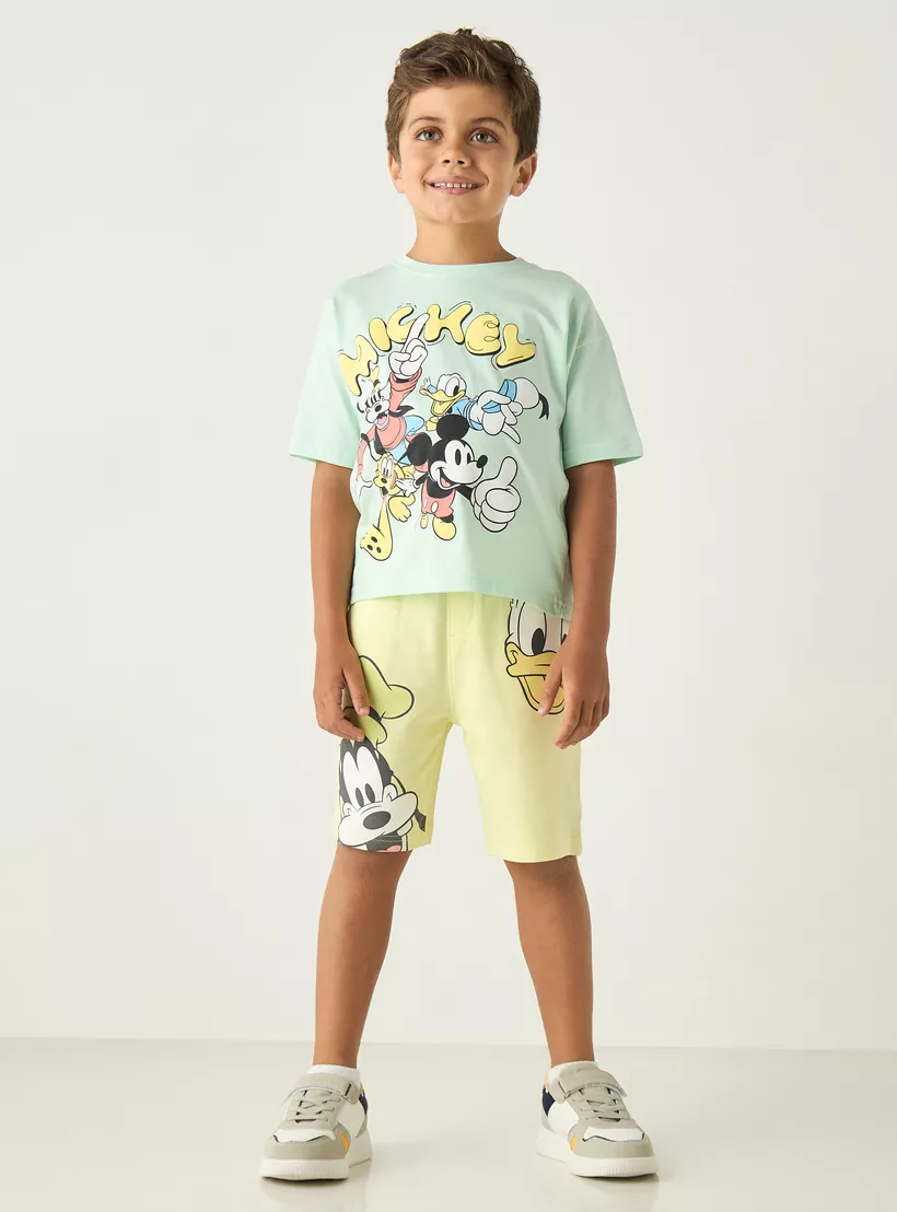 Disney Mickey Mouse and Friends Print Crew Neck T-shirt with Short Sleeves