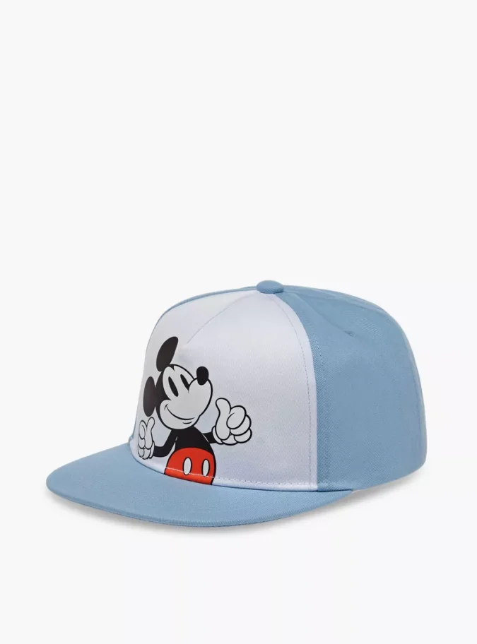 Disney Mickey Mouse Print Cap with Hook and Loop Closure