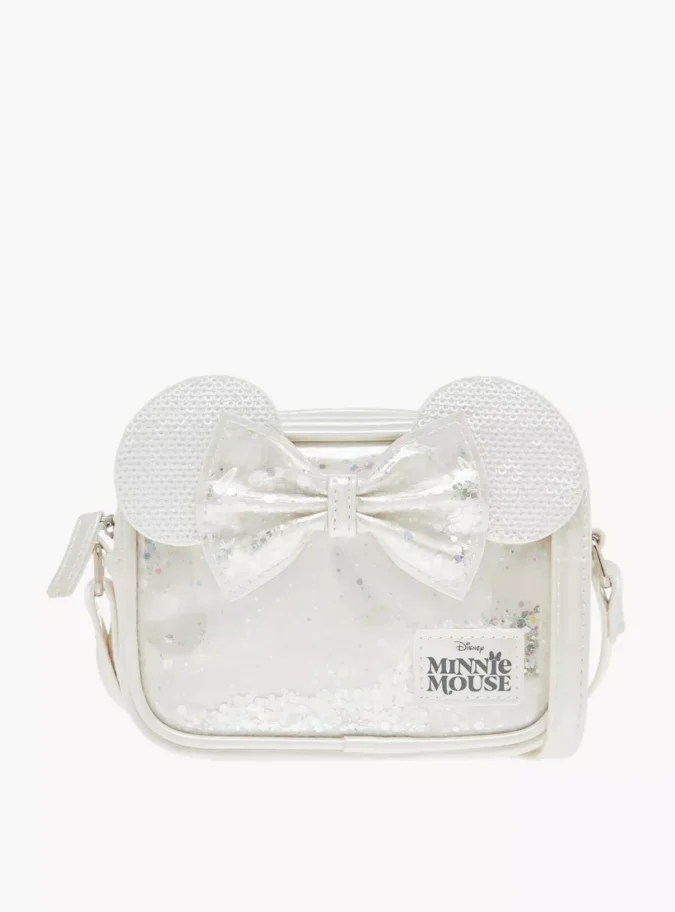 Embraces Minnie’s iconic color palette of black, red, and white, often accented with her famous polka-dot pattern on the bow or strap. The design is both cute and stylish.