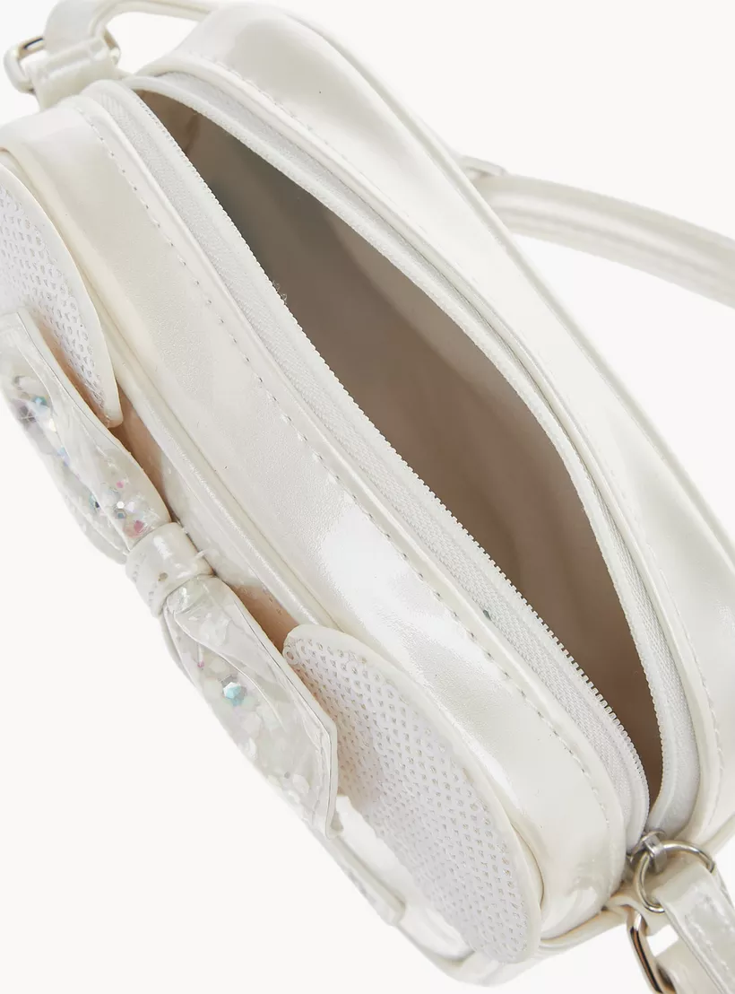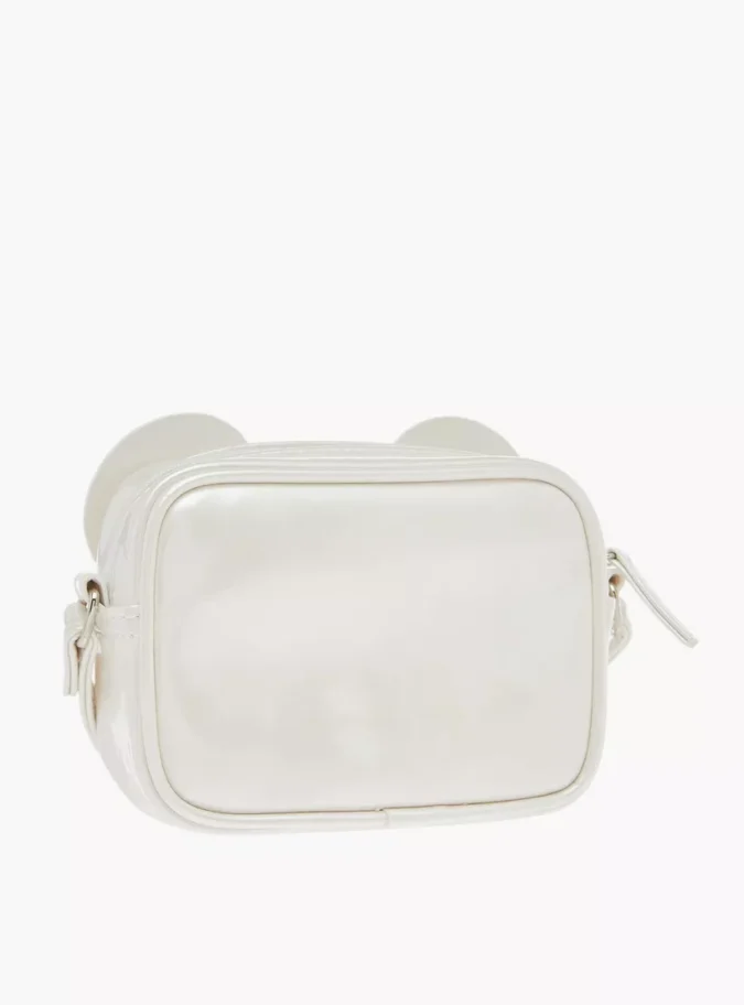 The bag’s standout feature is a large, textured appliqué of Minnie Mouse’s face on the front flap. This typically includes her signature bow, happy face, and ears, creating a bold and instantly recognizable 3D effect.