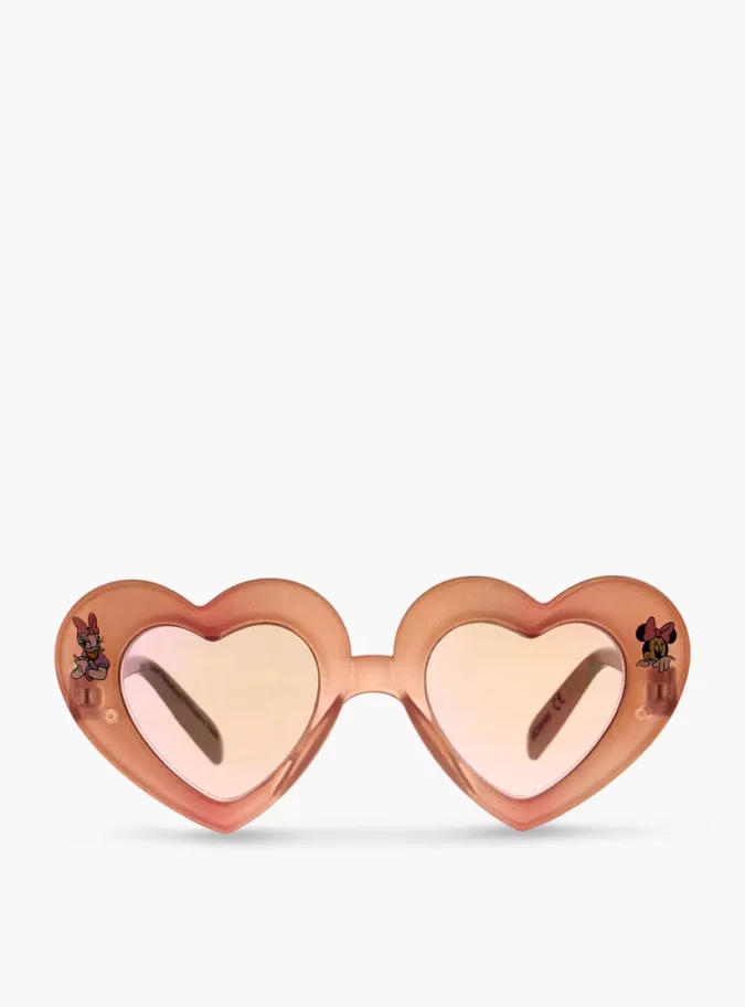 Iconic Heart-Shaped Frame: The full-rim frame is molded into a stylized heart, directly inspired by Minnie Mouse’s famous bow. This is the central, most distinctive feature of the sunglasses.