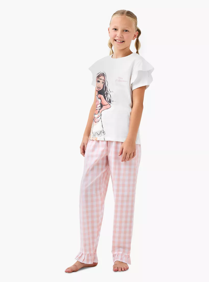 Disney Moana Print T-shirt and Checked Pyjama Set