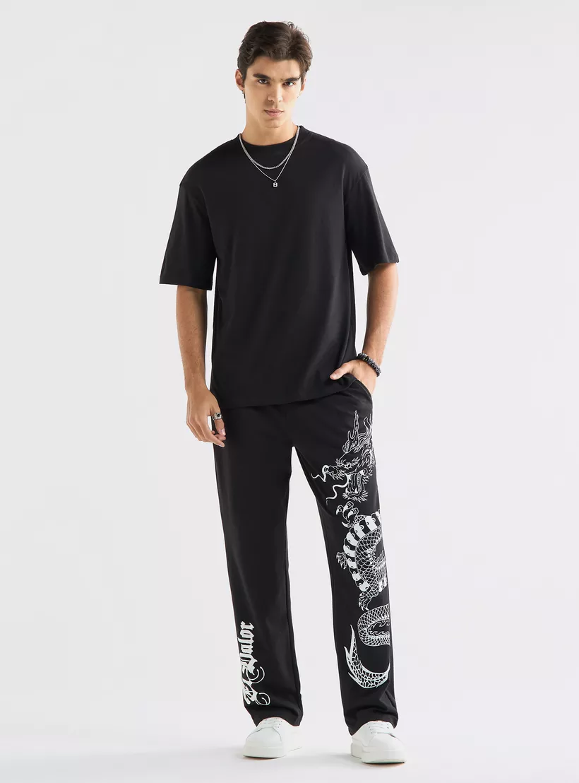 Dragon Print Relaxed Fit Joggers with Flexi Waist and Pockets