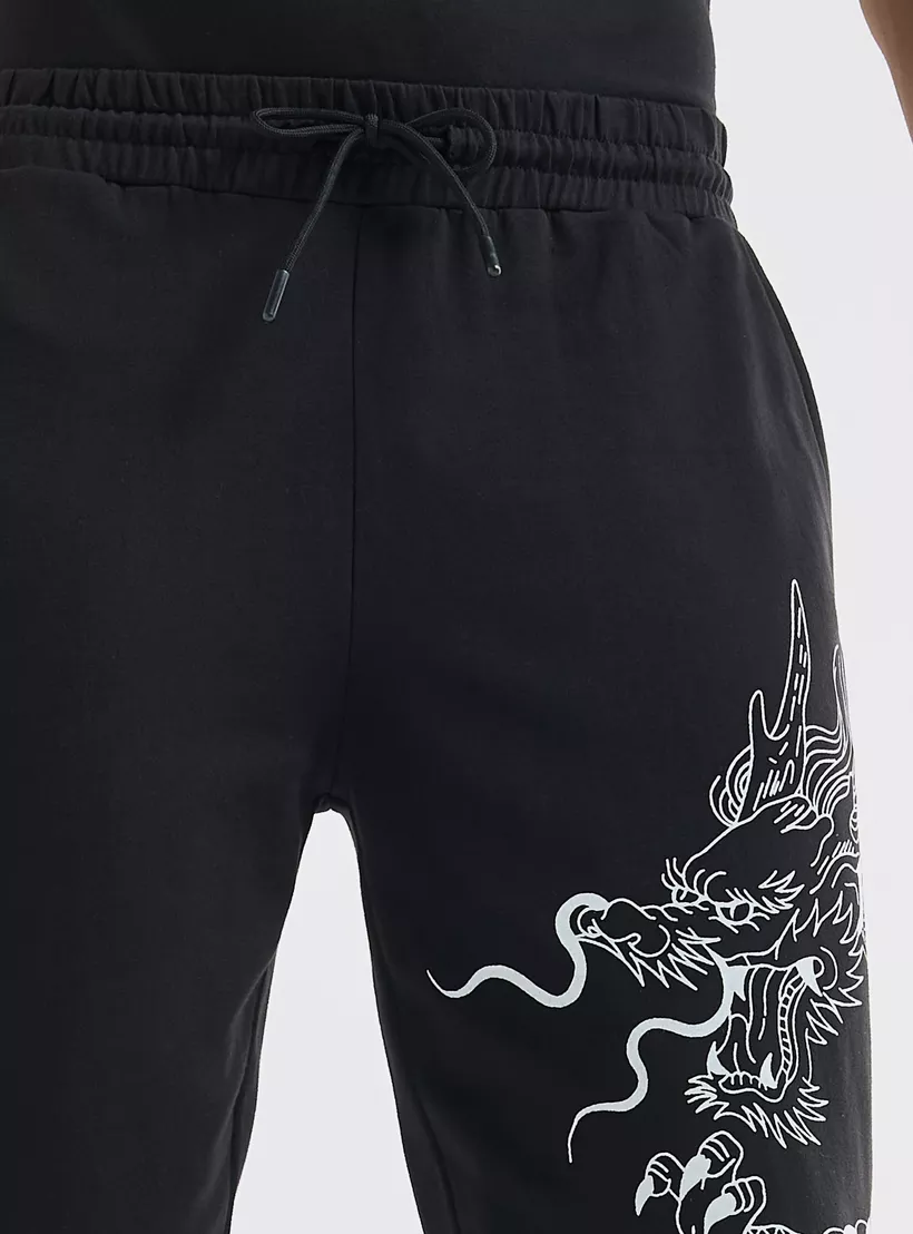 Step up your casual style game with these versatile dragon print joggers crafted from responsibly sourced cotton. Stay relaxed and comfortable all day long with their flexible waist, pockets and regular fit.