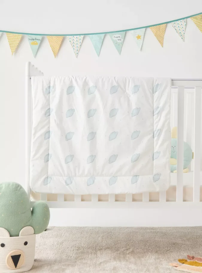 Adorable Cloud Print: Playful, gender-neutral design suitable for any nursery theme.