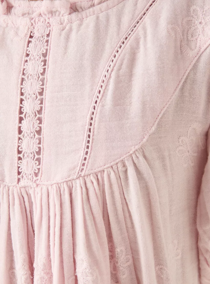 - All-over floral embroidery for a charming, textured look
