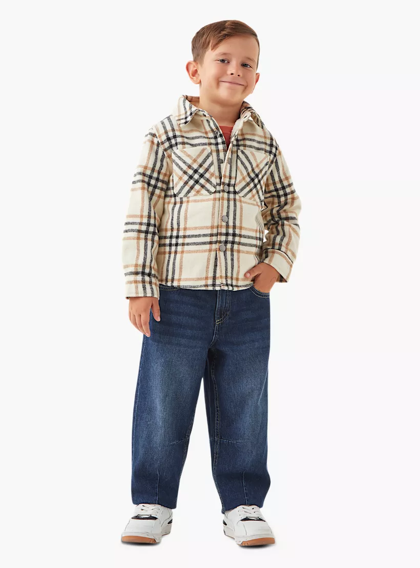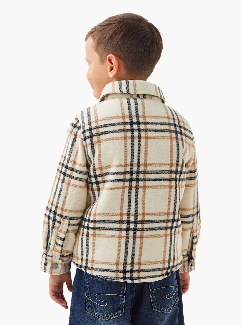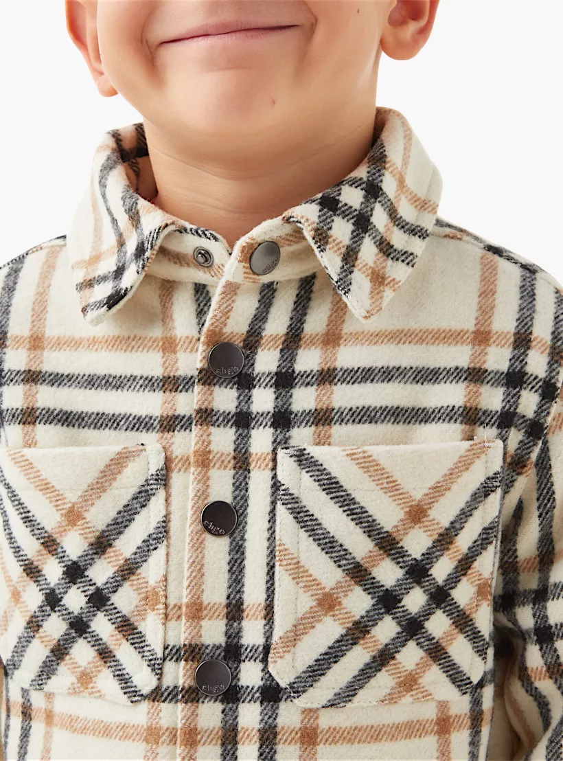Eligo Checked Heavy Jacket with Pockets and Snap Button Closure