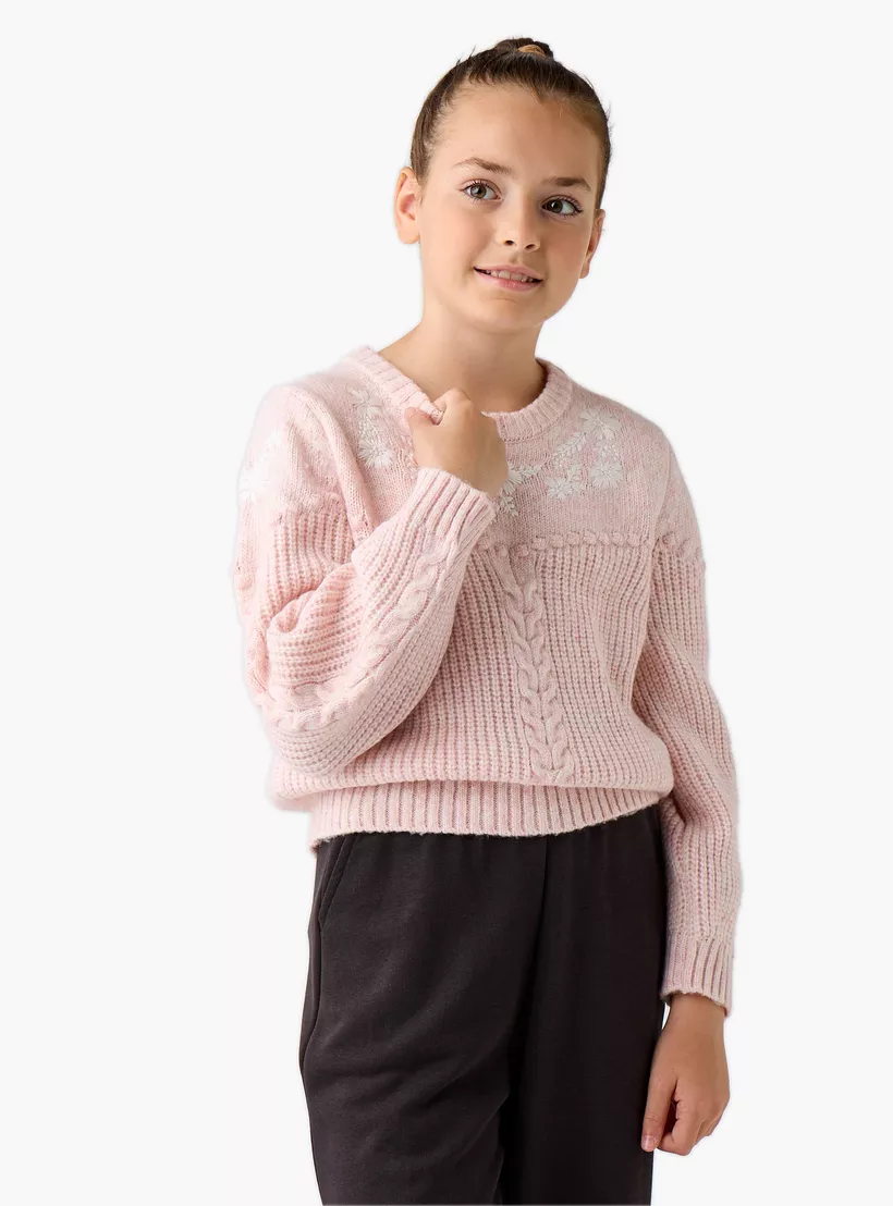 Eligo Floral Embroidered Pullover with Long Sleeves