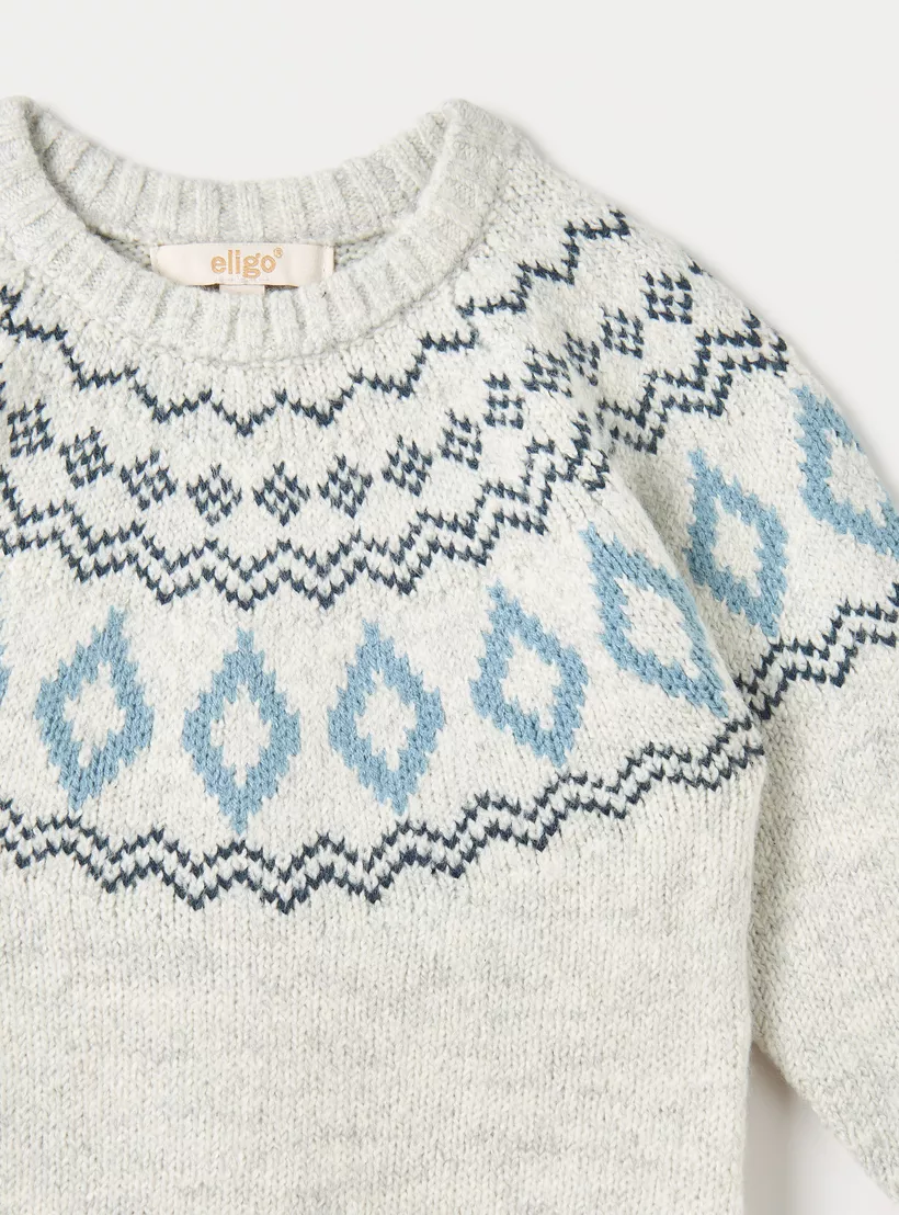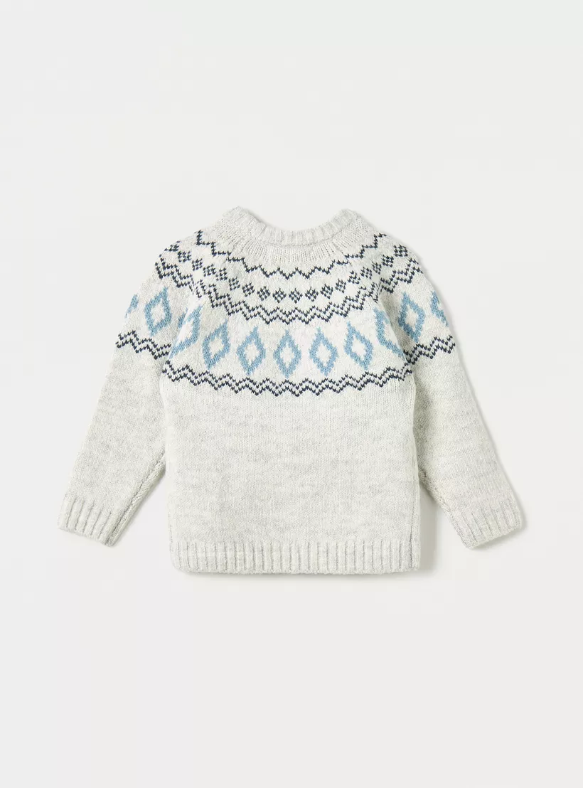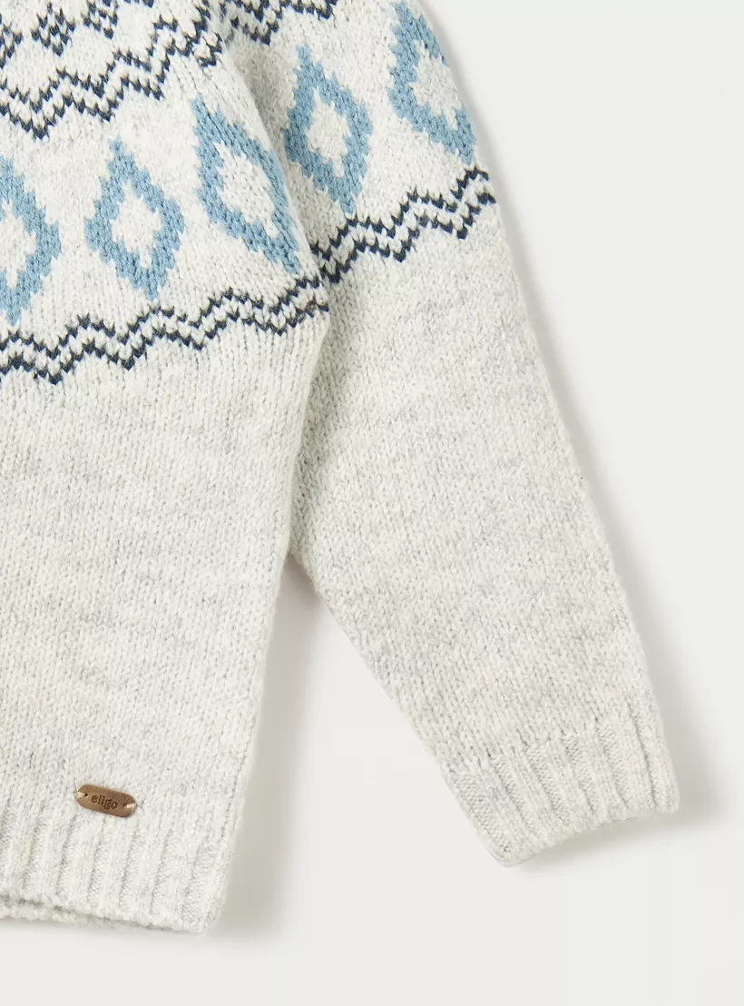 Eligo Geometric Print Sweater with Crew Neck and Long Sleeves