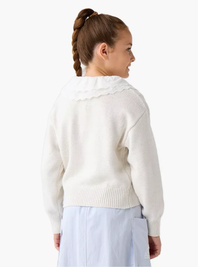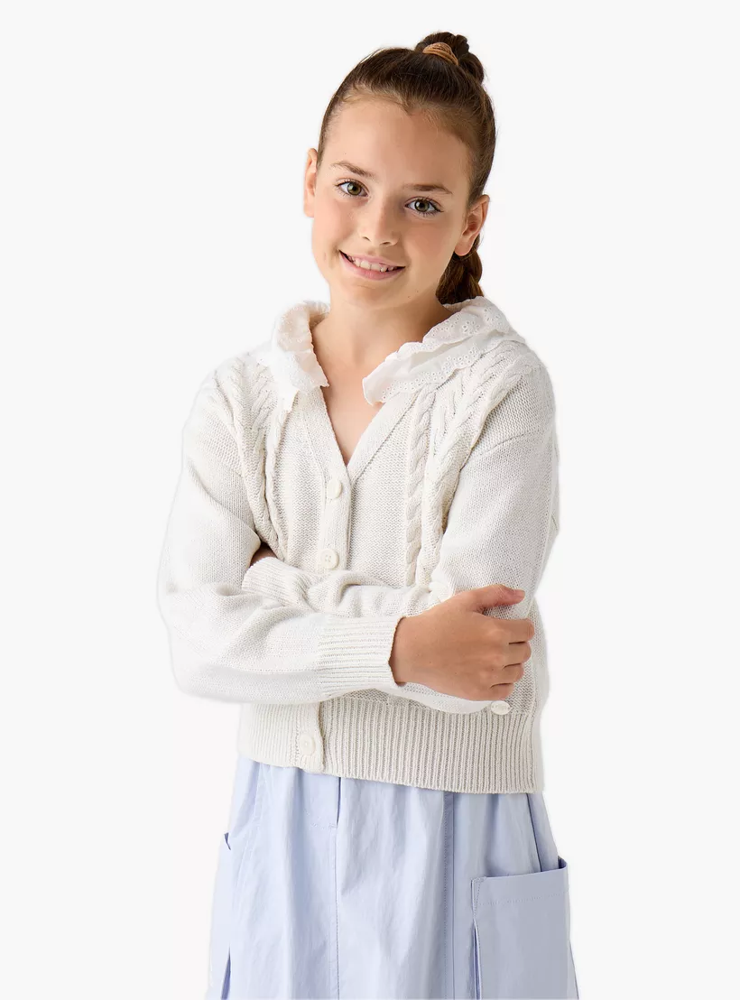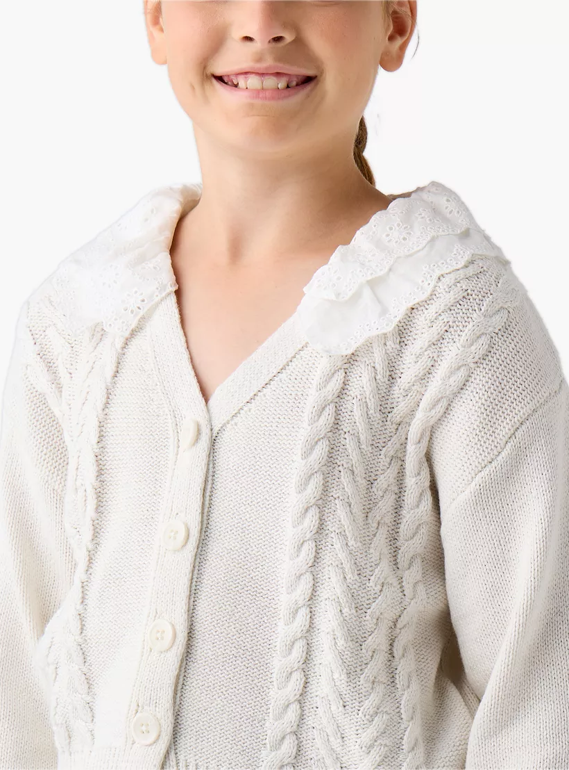 Eligo Lace Detail Button Through Cardigan with Long Sleeves