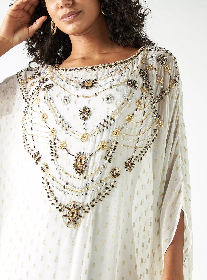 • Elegant Embellishments: Adorned with delicate embellishments that add a touch of glamour and sophistication to the tunic.